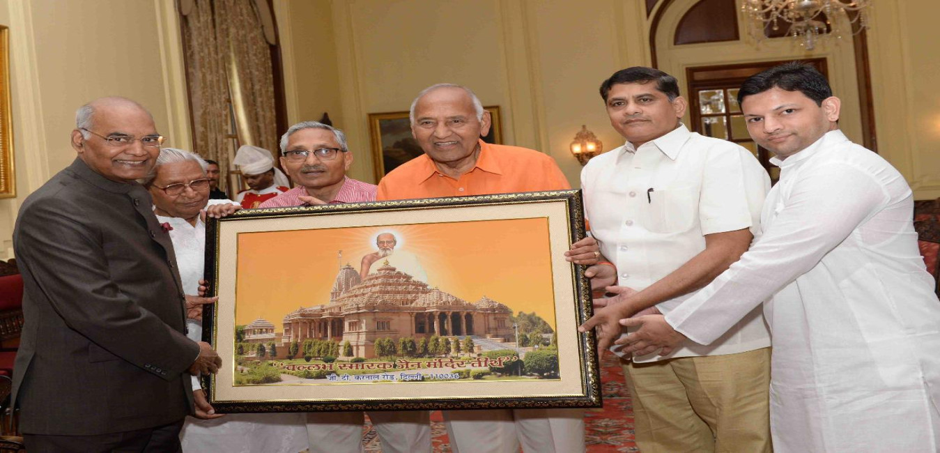 Shri Tarun Kumar Jain with others meeting with the President of India, Shri Ram Nath Kovind, at Rashtrapati Bhavan on April 04, 2018.