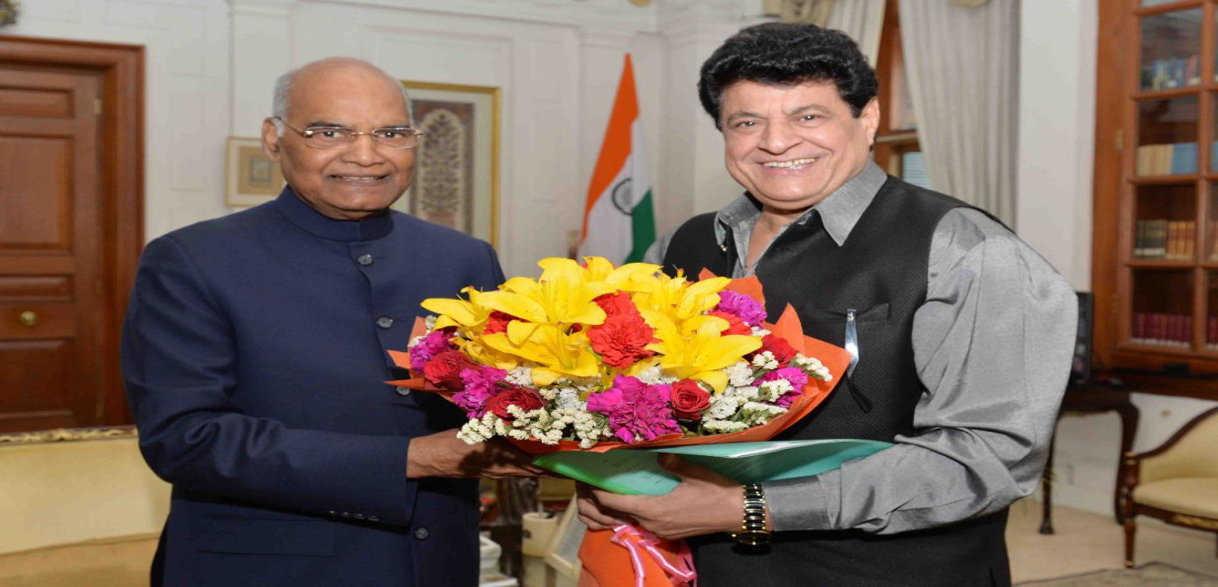 Shri Gajendra Chauhan, Ex-Chairman, Film and Television Institute of India (FTII), Pune meeting with the President of India, Shri Ram Nath Kovind, at Rashtrapati Bhavan on April 03, 2018.