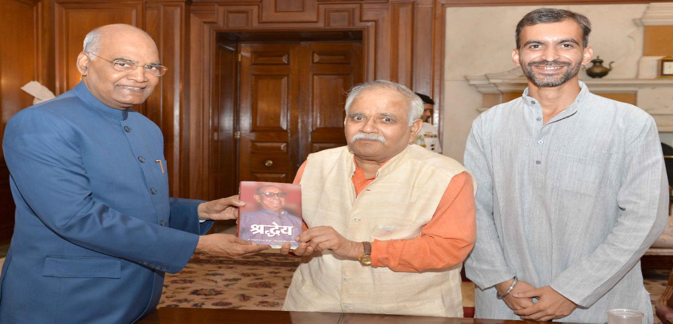 The former Governor of Karnataka, Shri T.N. Chaturvedi presenting publications of IIPA to the President of India, Shri Ram Nath Kovind, at Rashtrapati Bhavan on September 12, 2018.