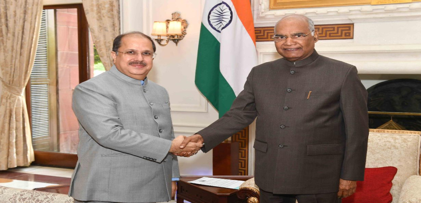 Shri Ajay Kumar Singh meeting with the President of India, Shri Ram Nath Kovind, at Rashtrapati Bhavan on April 25, 2019.