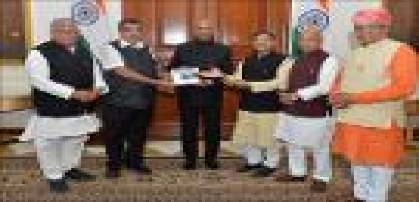 The Minister of Road Transport and Highways and Micro, Small & Medium Enterprises, Shri Nitin Gadkari along with Shri Tarun Vijay, Ex. MP (RS), Shri Shiv Pratap Shukla, MP (RS), Shri Narayan Lal Panchariya, MP (RS) and Shri Rajendra Agrawal, MP (LS) meeting with the President of India, Shri Ram Nath Kovind, at Rashtrapati Bhavan on March 17, 2020.