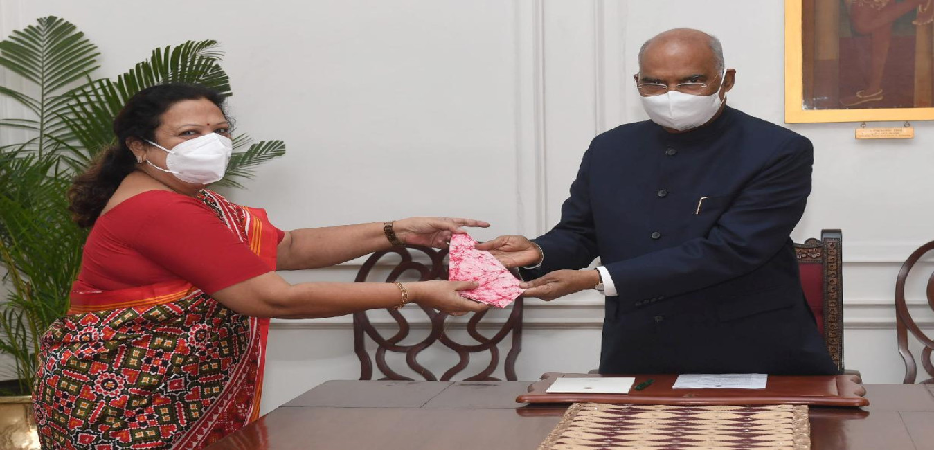 The Minister of State for Railways & Textiles, Smt. Darshana Jardosh calling on the President of India, Shri Ram Nath Kovind, at Rashtrapati Bhavan on July 20, 2021.