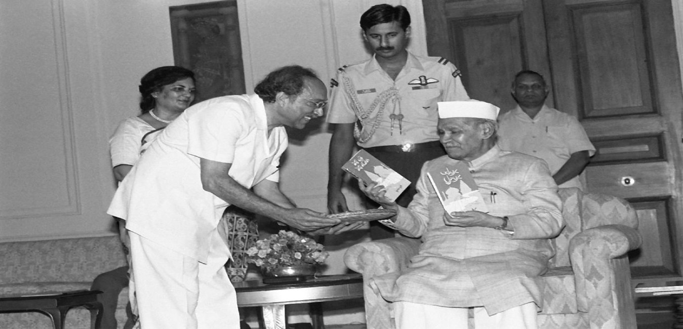 The President of India, Dr. Shankar Dayal Sharma receiving a copy of the book "Azadi Ke Kranti Geet" brought out by the Research and Documentation Centre of Freedom Movement of the Institute for Socialist Eduction at Rashtrapati Bhavan in New Delhi on May 19, 1994.