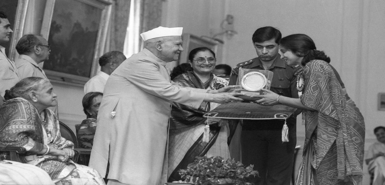 The President of India, Dr. Shankar Dayal Sharma receiving a copy of Book "Sparsh" from Smt. Aradhana Choudhary at Rashtrapati Bhavan in New Delhi on July 21, 1997