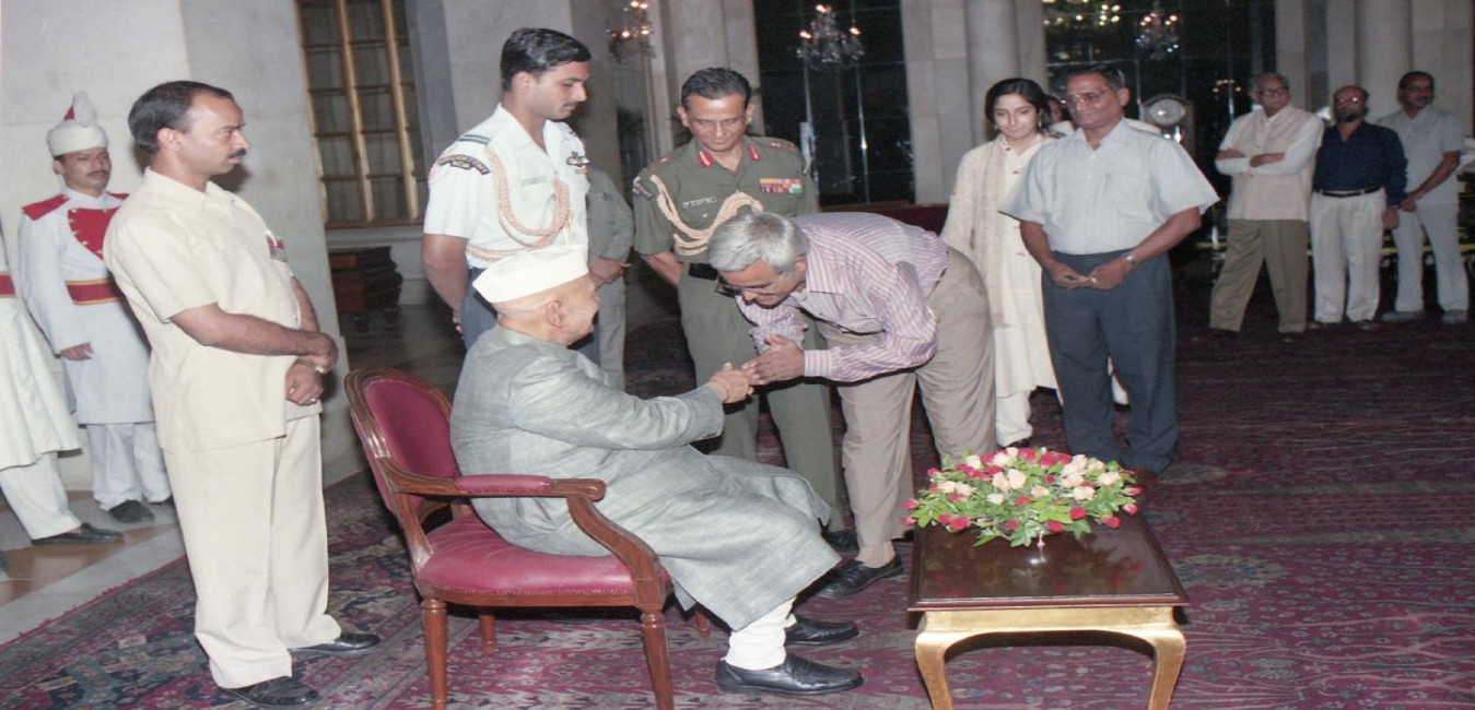 The President of India, Dr. Shankar Dayal Sharma meeting with Dr. Ramesh Sharma at Rashtrapati Bhavan in New Delhi on July 21, 1997