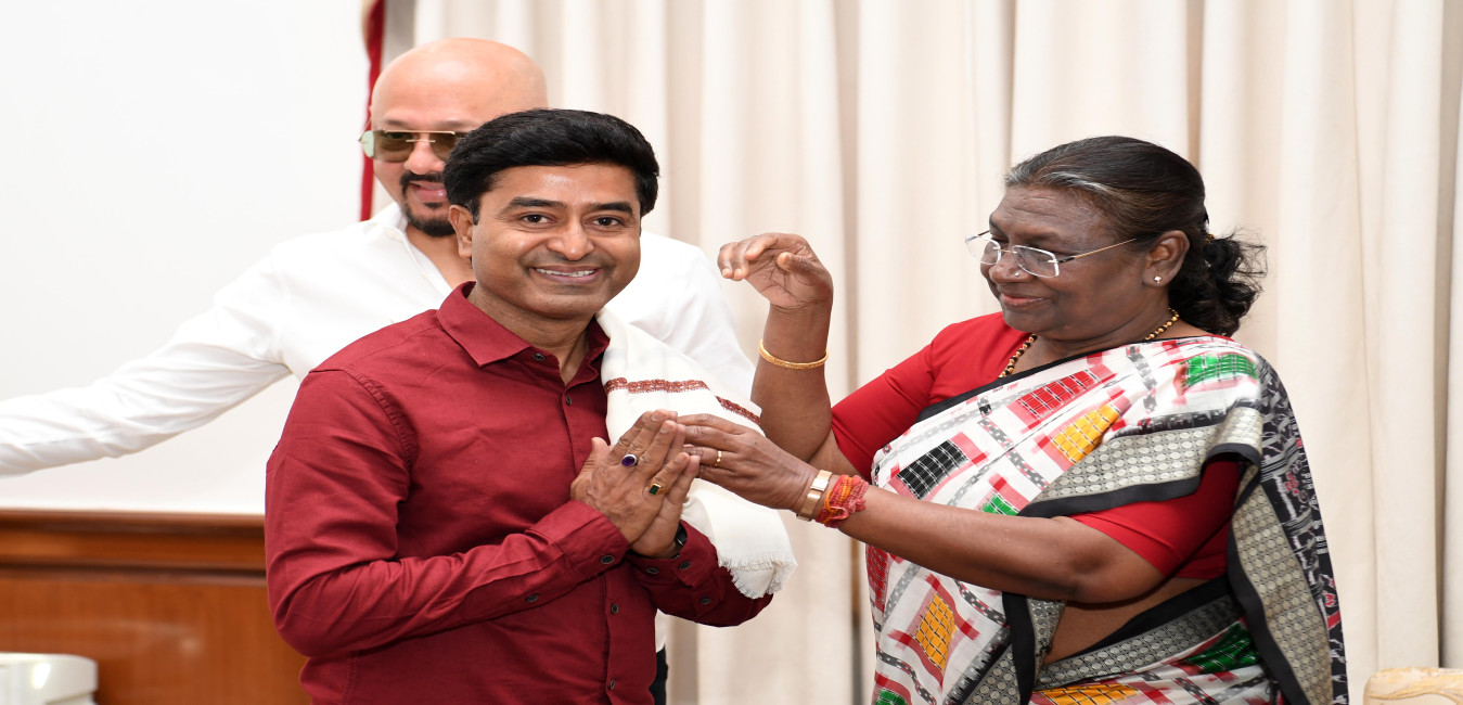 Shri Bhadav Hansdah along with others meeting with the President of India Smt Droupadi Murmu at Rashtrapati Bhavan on March 26, 2024.