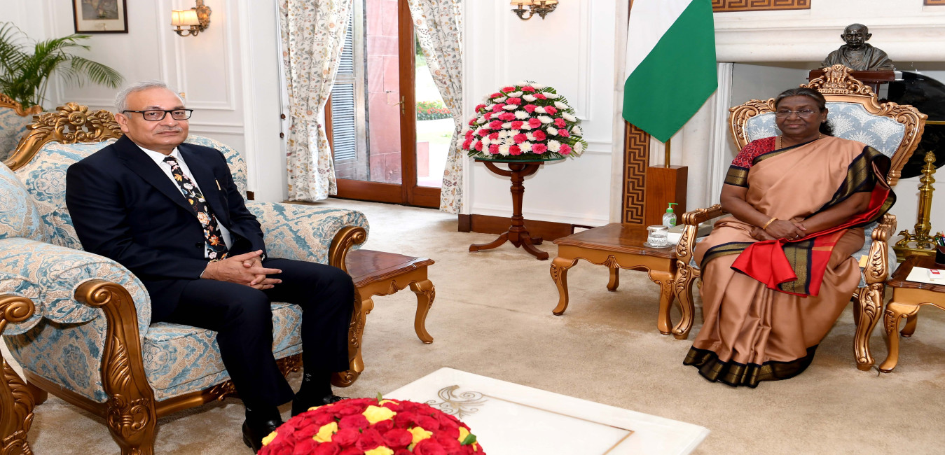 Prof. B.S. Sahay, Director (I/C), Indian Institute of Management, Jammu meeting with the President of India Smt Droupadi Murmu at Rashtrapati Bhavan on April 8, 2024.