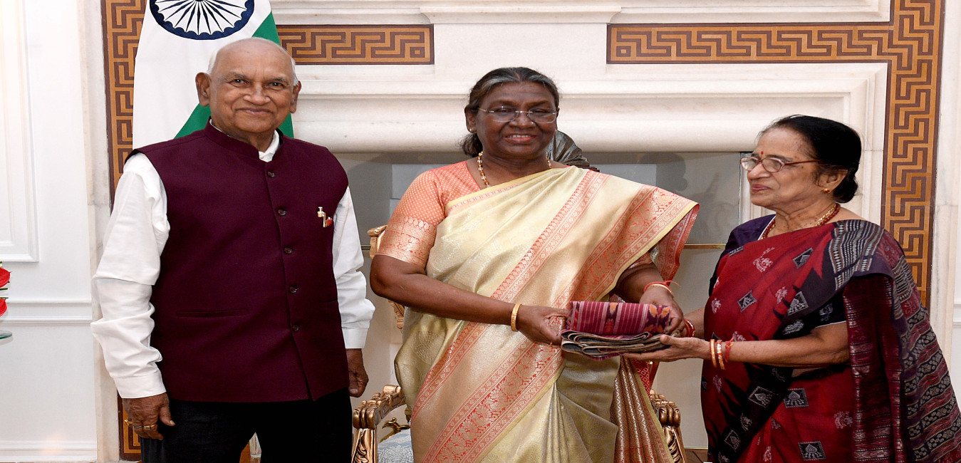 Shri Debabrata Ratha Mohapatra along with others meeting with the President of India Smt. Droupadi Murmu at Rashtrapati Bhavan on April 26, 2024.