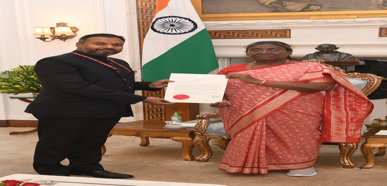 The Ambassador-designate of India to the Republic of Niger, Shri Sita Ram Meena meeting with the President of India Smt Droupadi Murmu at Rashtrapati Bhavan on April 30, 2024.