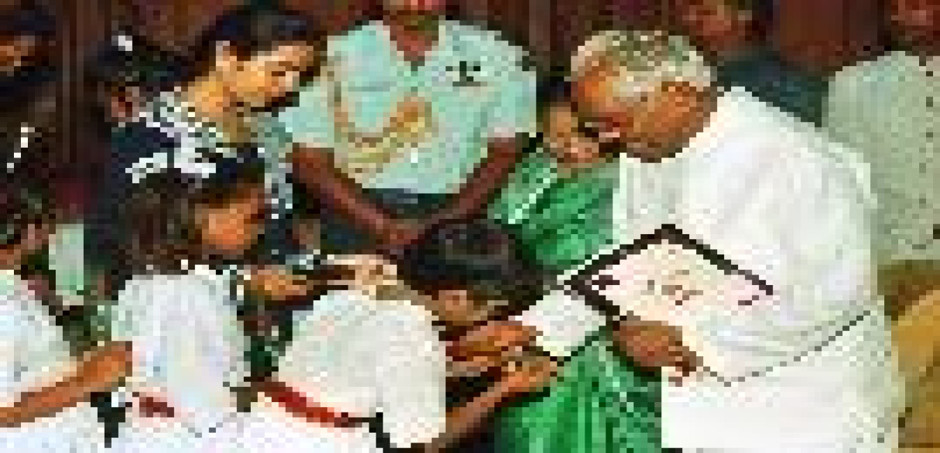 The President of India, Shri K R Narayanan at a Swearing-in-Ceremony of the Vice President of India, Shri Krishan Kant at the Ashok Hall of Rashtrapati Bhavan in New Delhi on Aug 21, 1997