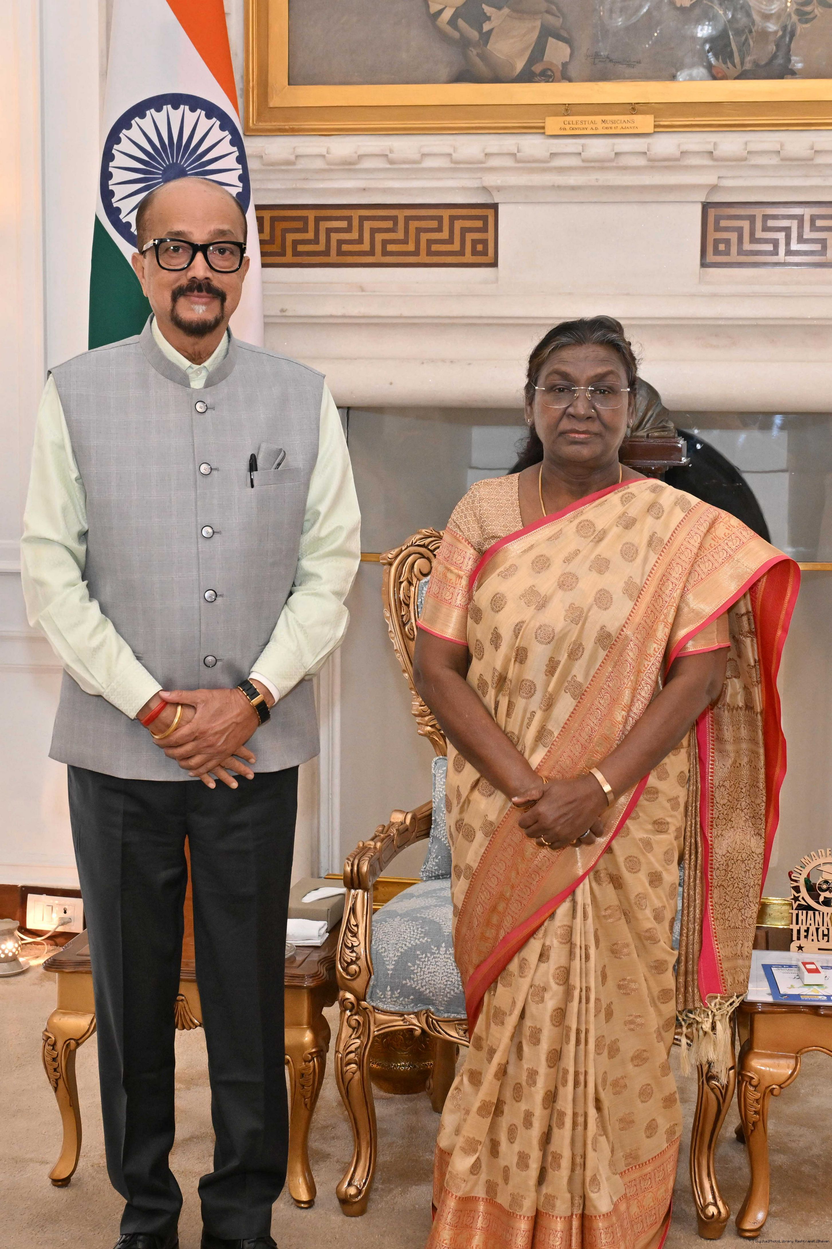 The Ambassador-designate of India to State of Israel, Shri Jitender Pal Singh meeting with the President of India, Smt. Droupadi Murmu at Rashtrapati Bhavan on February, 12, 2025.