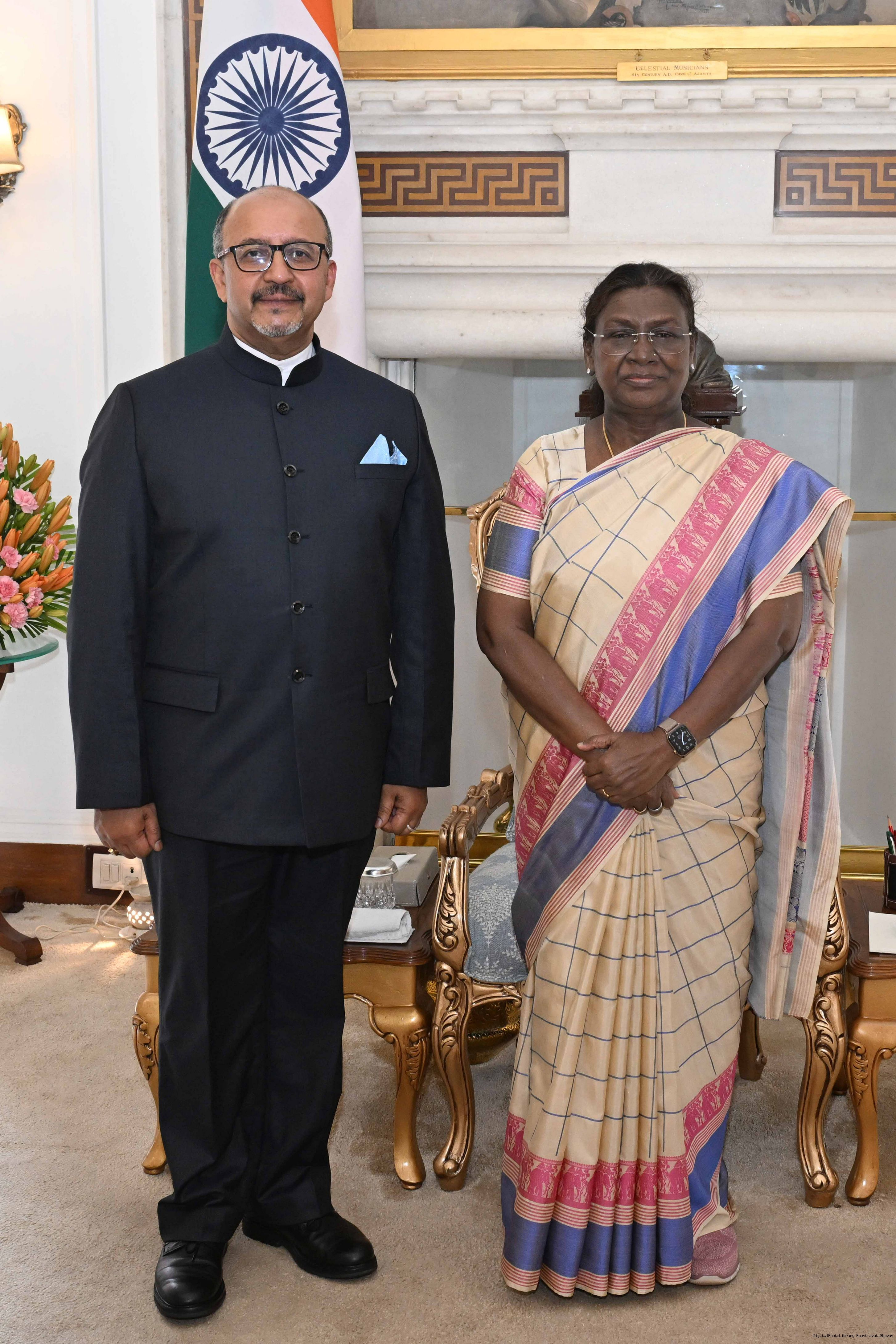 The Ambassador-designate of India to Argentina, Shri Ajaneesh Kumar meeting with the President of India, Smt. Droupadi Murmu at Rashtrapati Bhavan on May 2, 2025.
