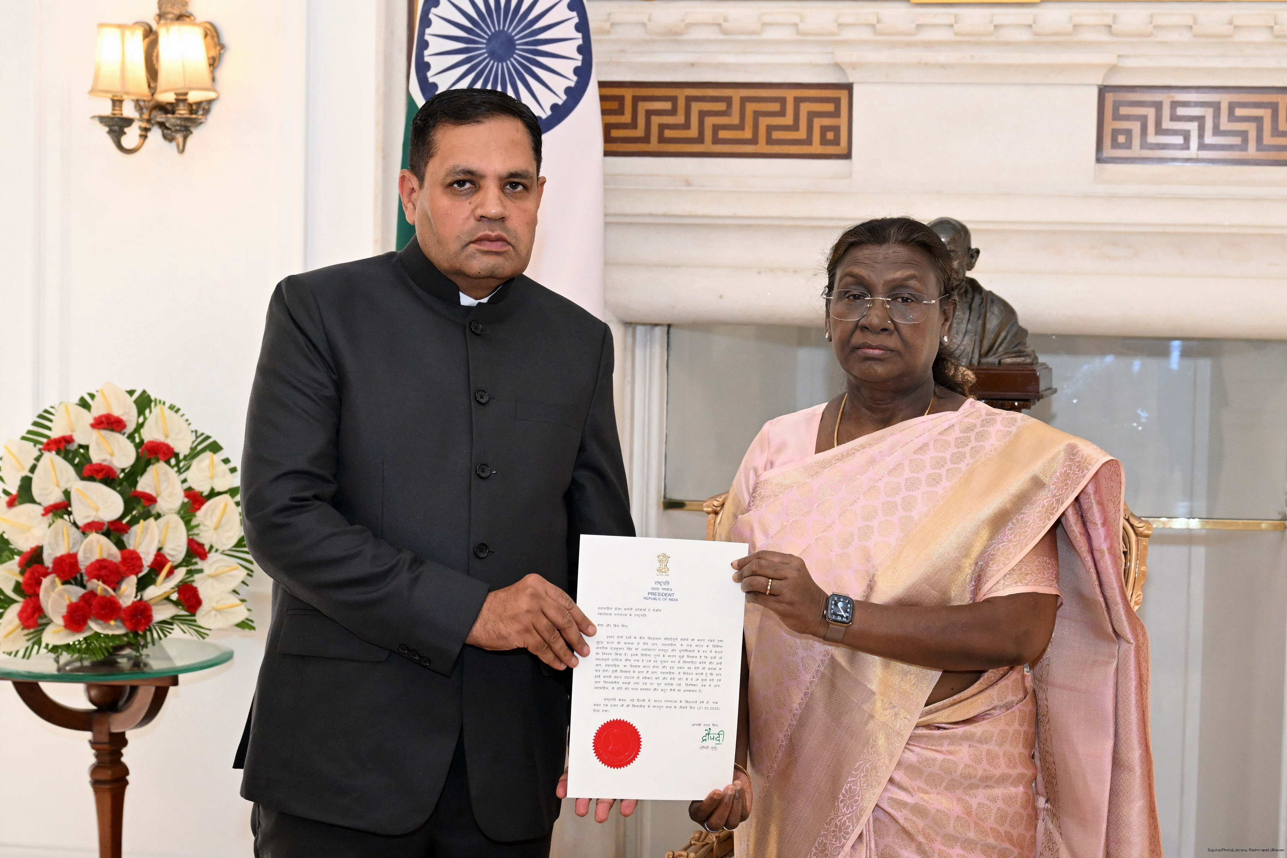 The Ambassador-designate of India to the Republic of Guatemala, Shri Raj Kumar Singh meeting with the President of India, Smt. Droupadi Murmu at Rashtrapati Bhavan on May 7, 2025.