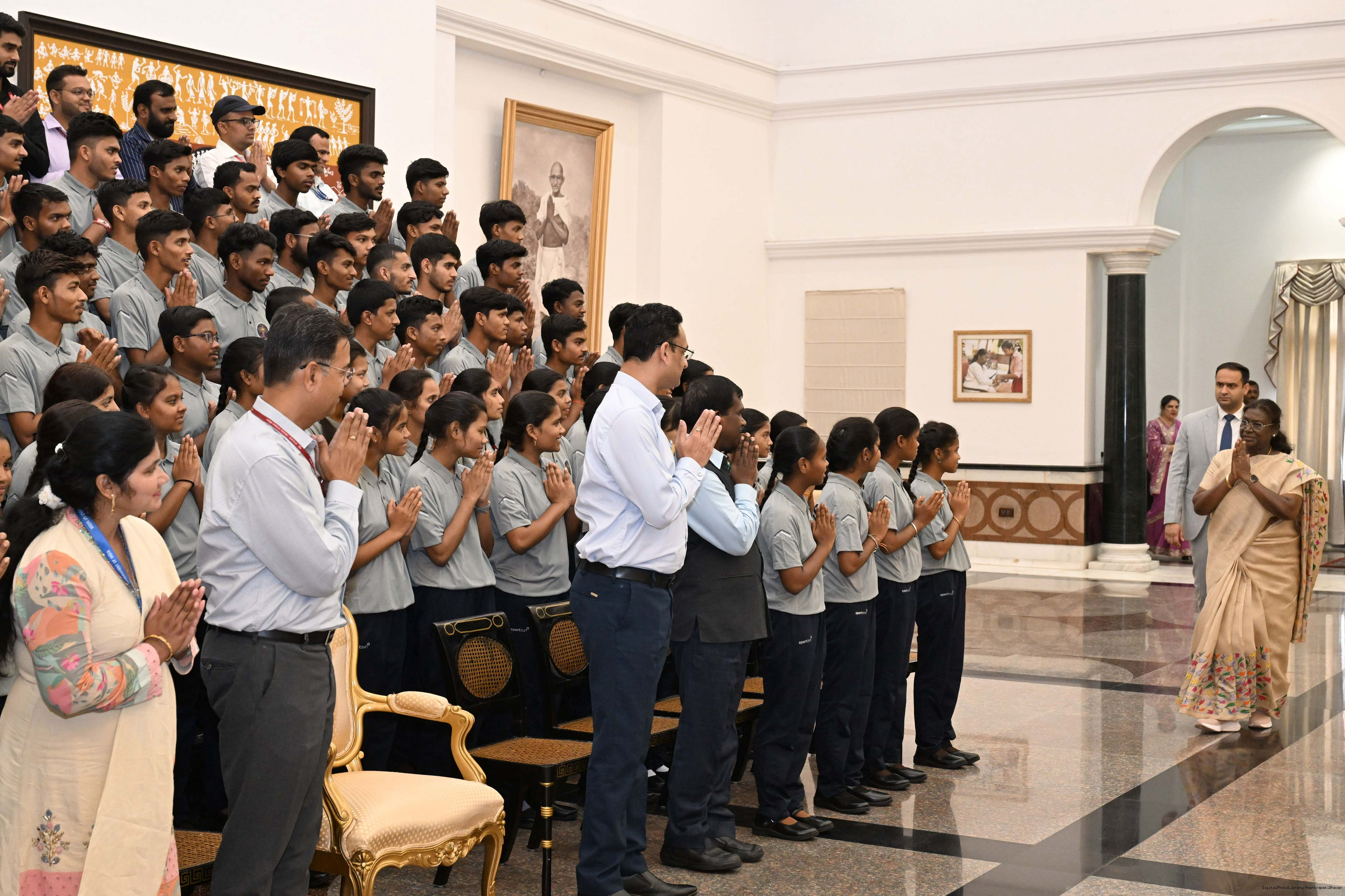 A group of students from various Eklavya Model Residential Schools called on the President of India, Smt. Droupadi Murmu at Rashtrapati Bhavan on May 9, 2025.