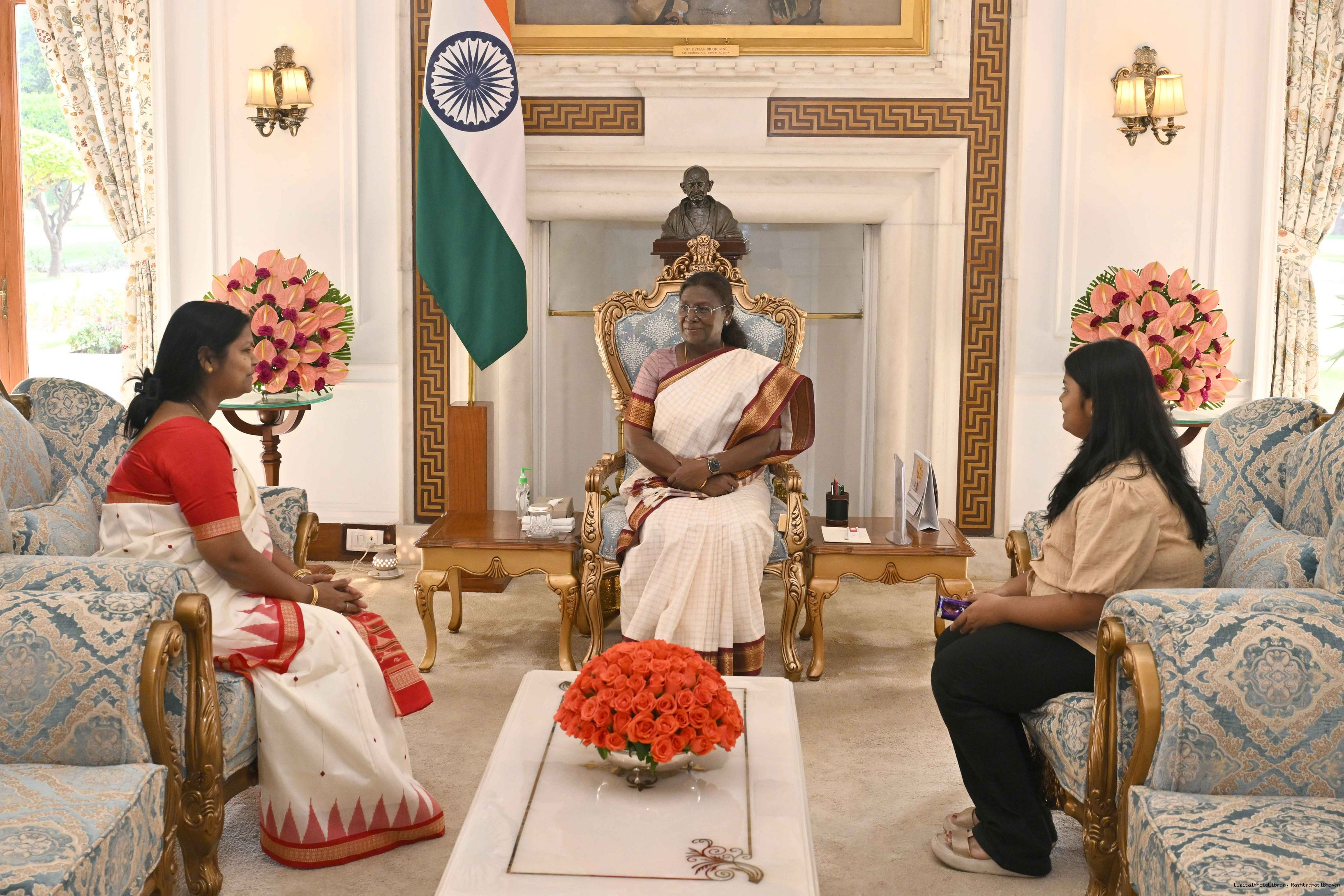 Ms. Kashika Misra, Odiya Golfer along with others meeting with the President of India, Smt. Droupadi Murmu at Rashtrapati Bhavan on May 22, 2025.