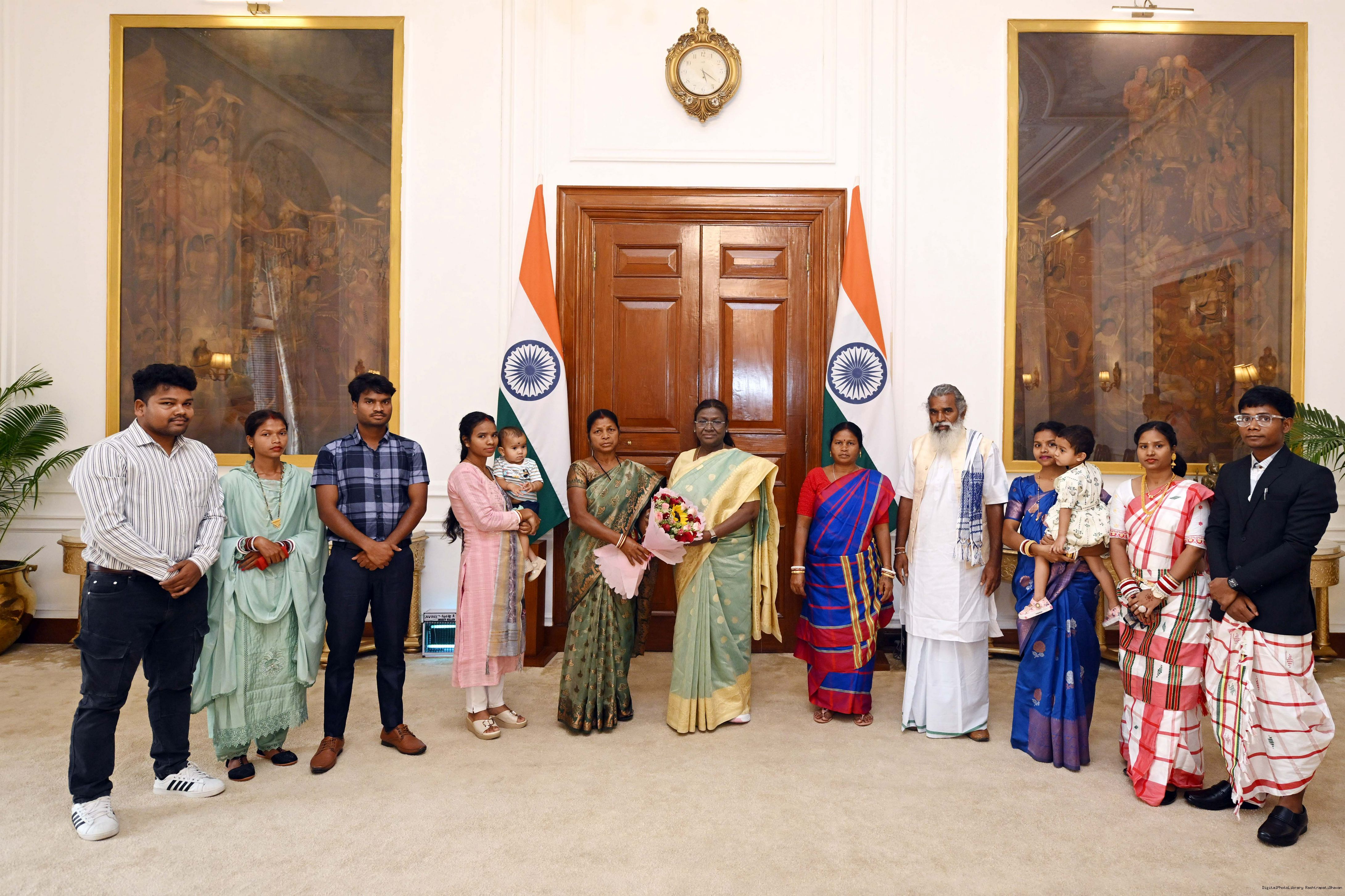Shri Sanjib Ku. Lenka from Rairangpur along with others meeting with the President of India, Smt. Droupadi Murmu at Rashtrapati Bhavan on May 22, 2025.