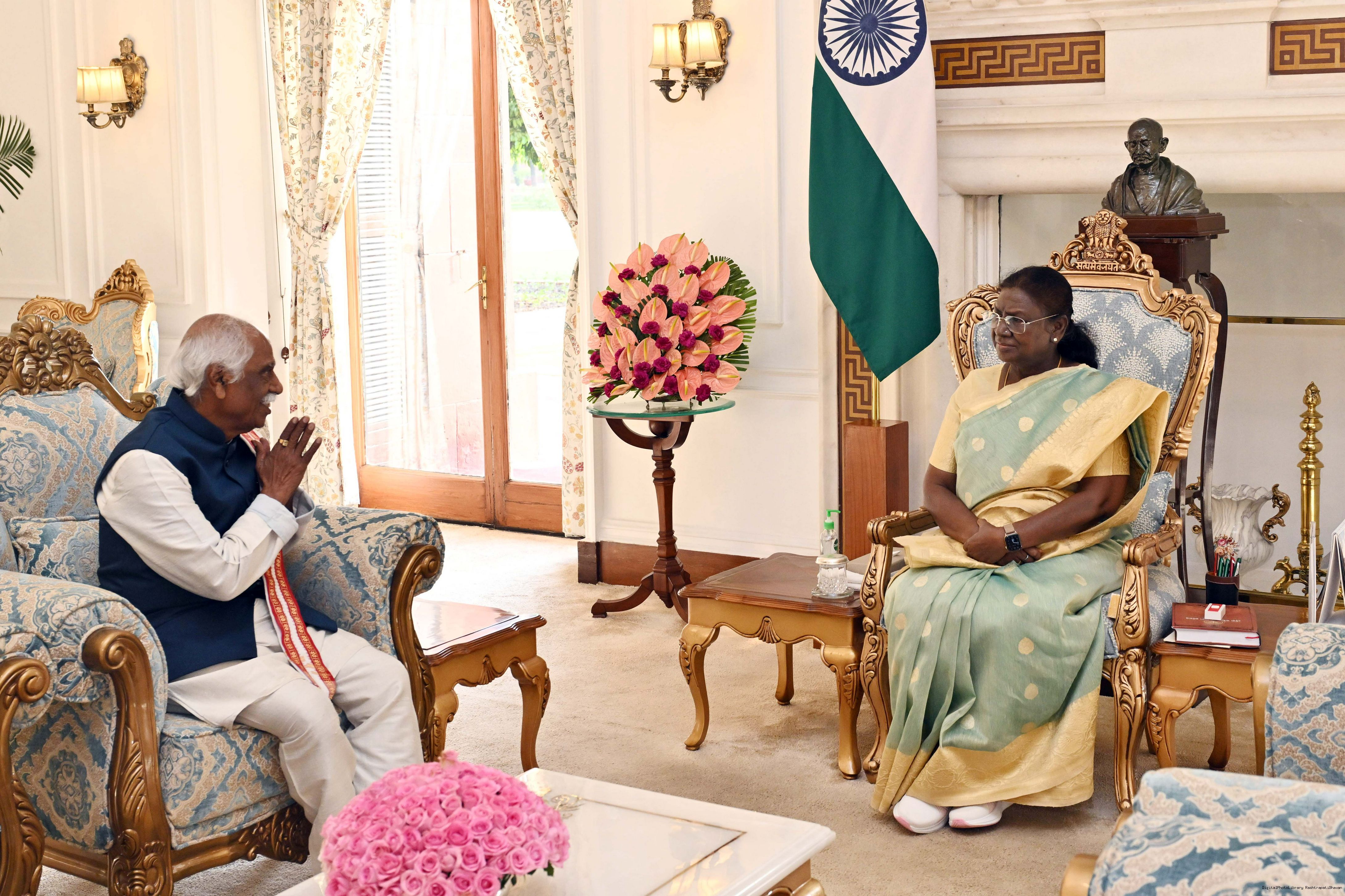 The Governor of Haryana, Shri Bandaru Dattatraya called on the President of India, Smt. Droupadi Murmu at Rashtrapati Bhavan on May 16, 2025.