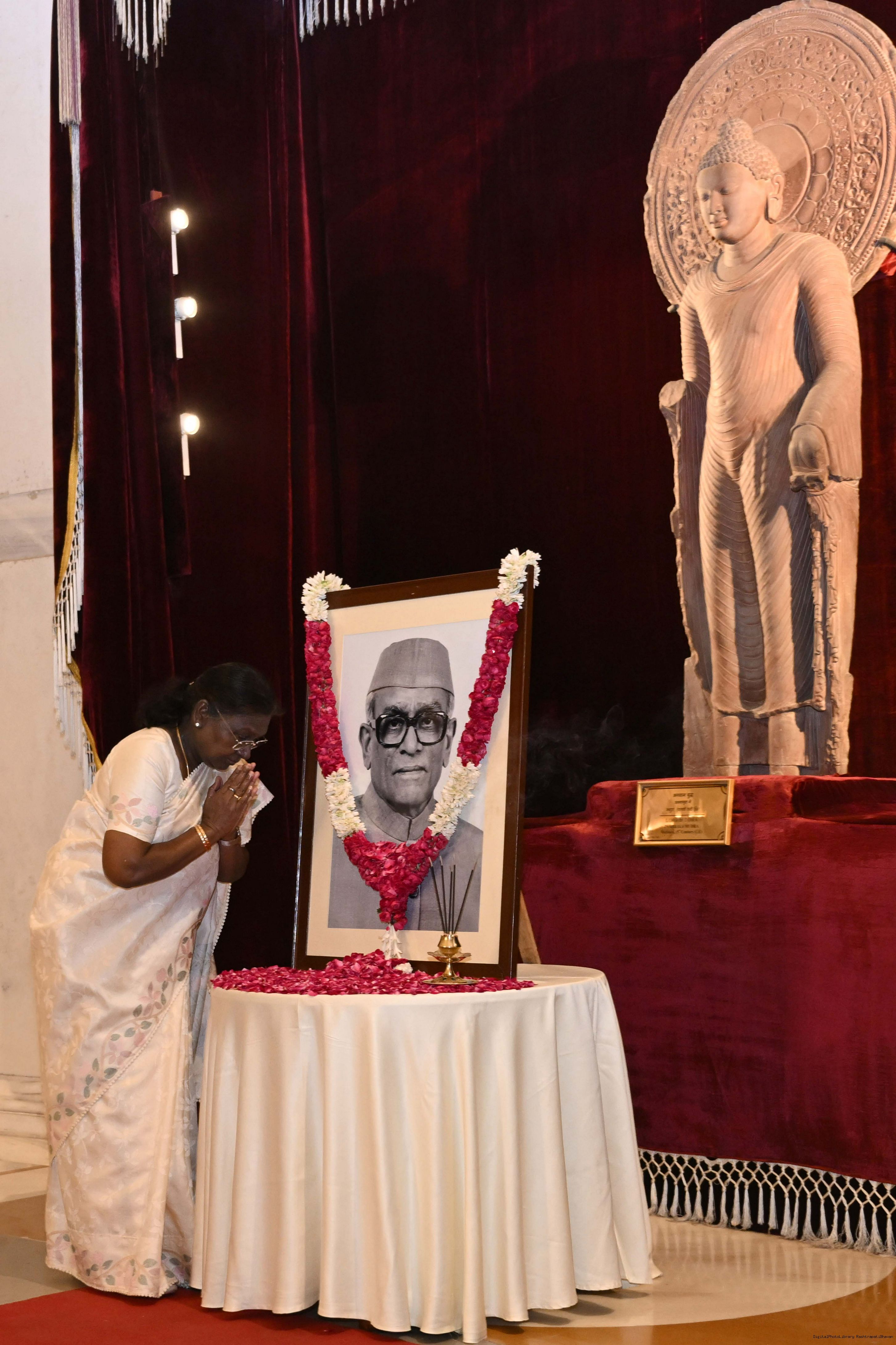 The President of India, Smt. Droupadi Murmu paid floral tributes to Shri Neelam Sanjiva Reddy, former President of India on his birth anniversary at Rashtrapati Bhavan on May 19, 2025.