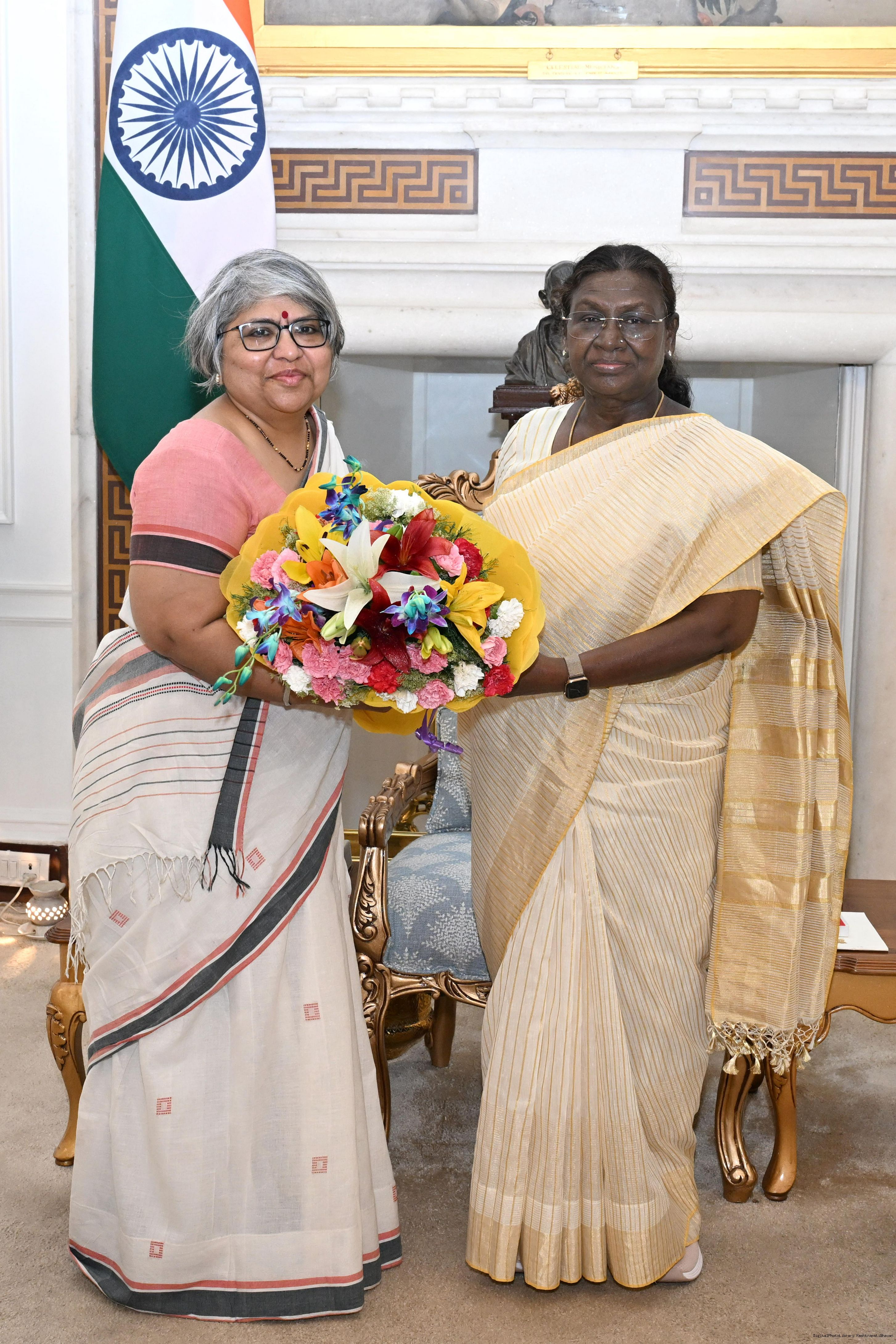 Smt. Sujata Chaturvedi, Member, Union Public Service Commission (UPSC) meeting with the President of India, Smt. Droupadi Murmu at Rashtrapati Bhavan on May 21, 2025.