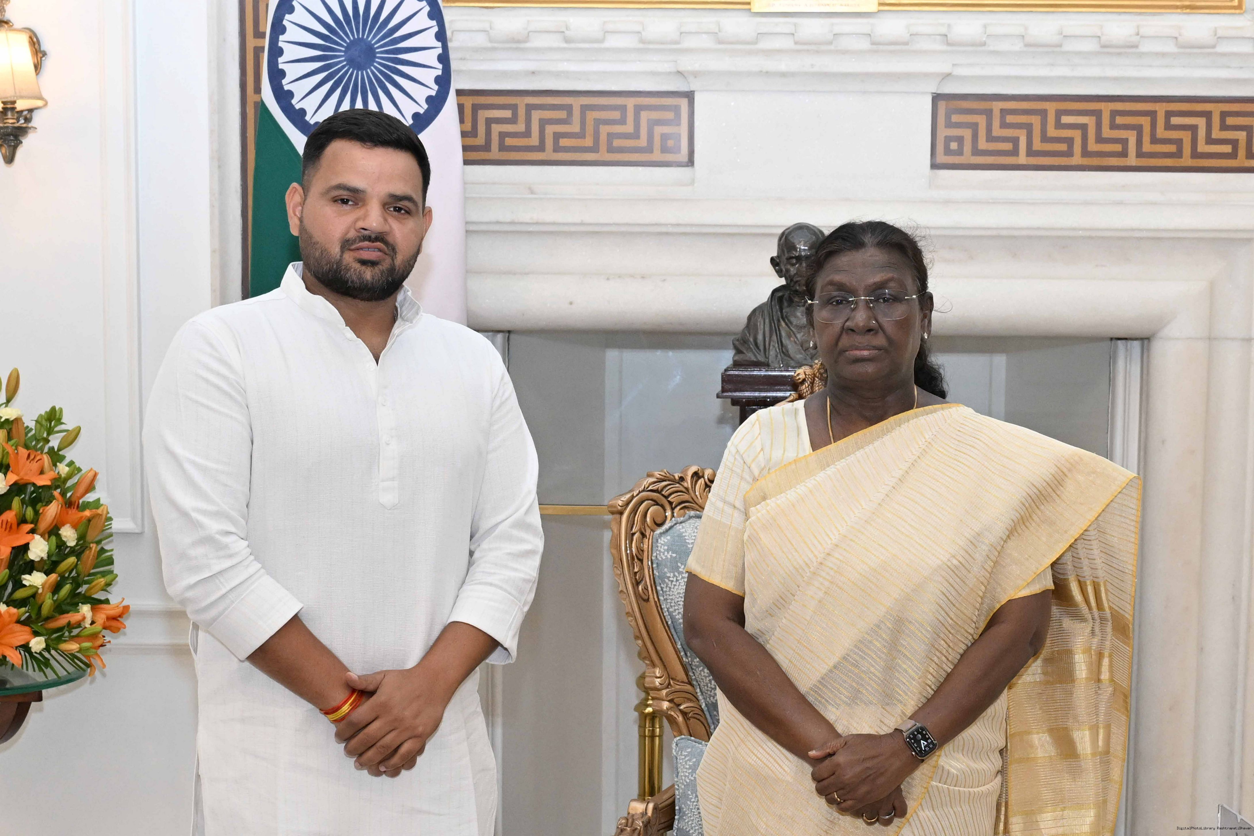 Shri Karan Bhushan Singh, Member of Parliament (Lok Sabha) from Kaiserganj, UP meeting with the President of India, Smt. Droupadi Murmu at Rashtrapati Bhavan on May 21, 2025.