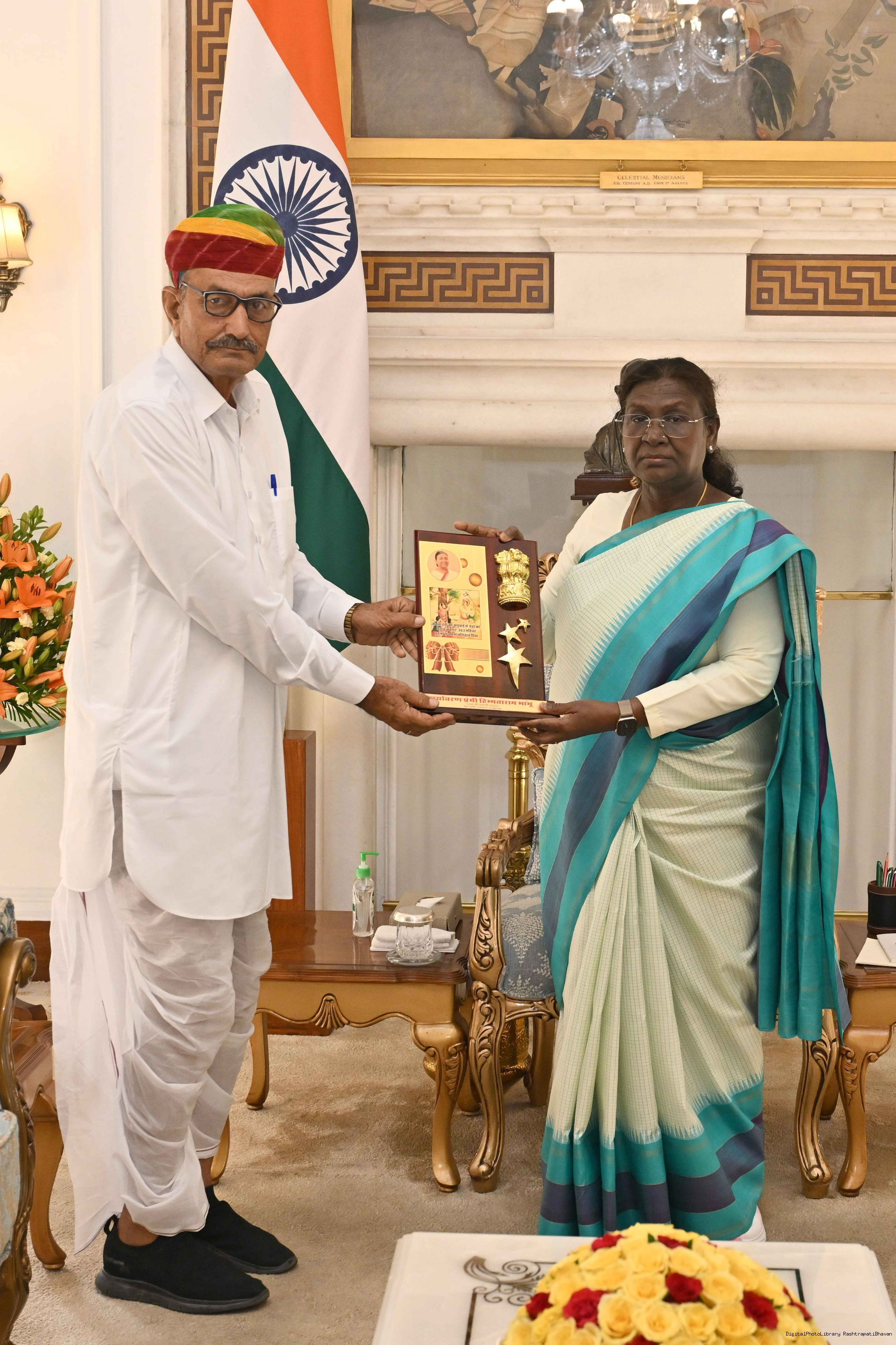 Shri Himataram Bhambhu, Padma Shri Awardee meeting with the President of India, Smt. Droupadi Murmu at Rashtrapati Bhavan on May 22, 2025.