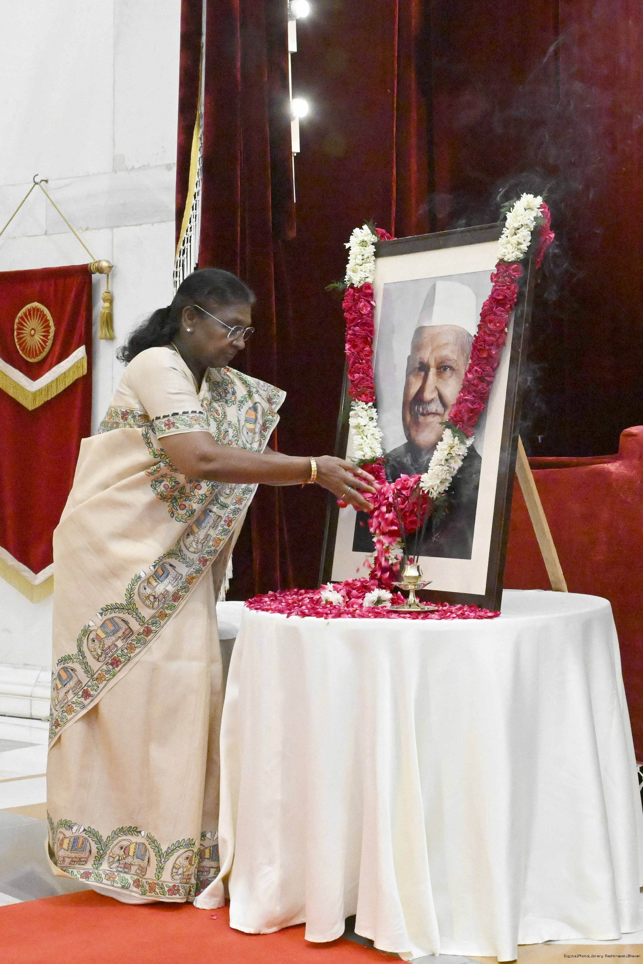 The President of India, Smt Droupadi Murmu paid floral tributes to Dr Shanker Dayal Sharma, former President of India on his birth anniversary at Rashtrapati Bhavan on August 19, 2025.