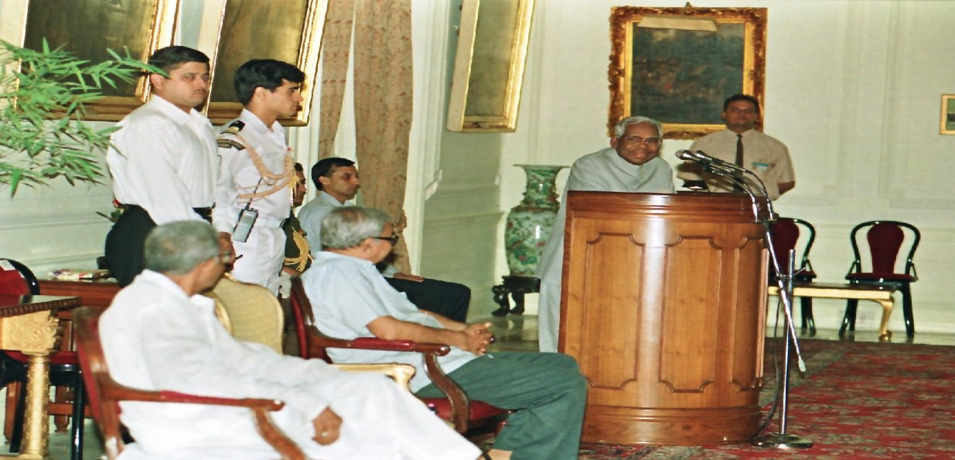 The President of India, Shri K R Narayanan being Hosted Reception to Media Persons at Rashtrapati Bhavan in New Delhi on June 27, 1998