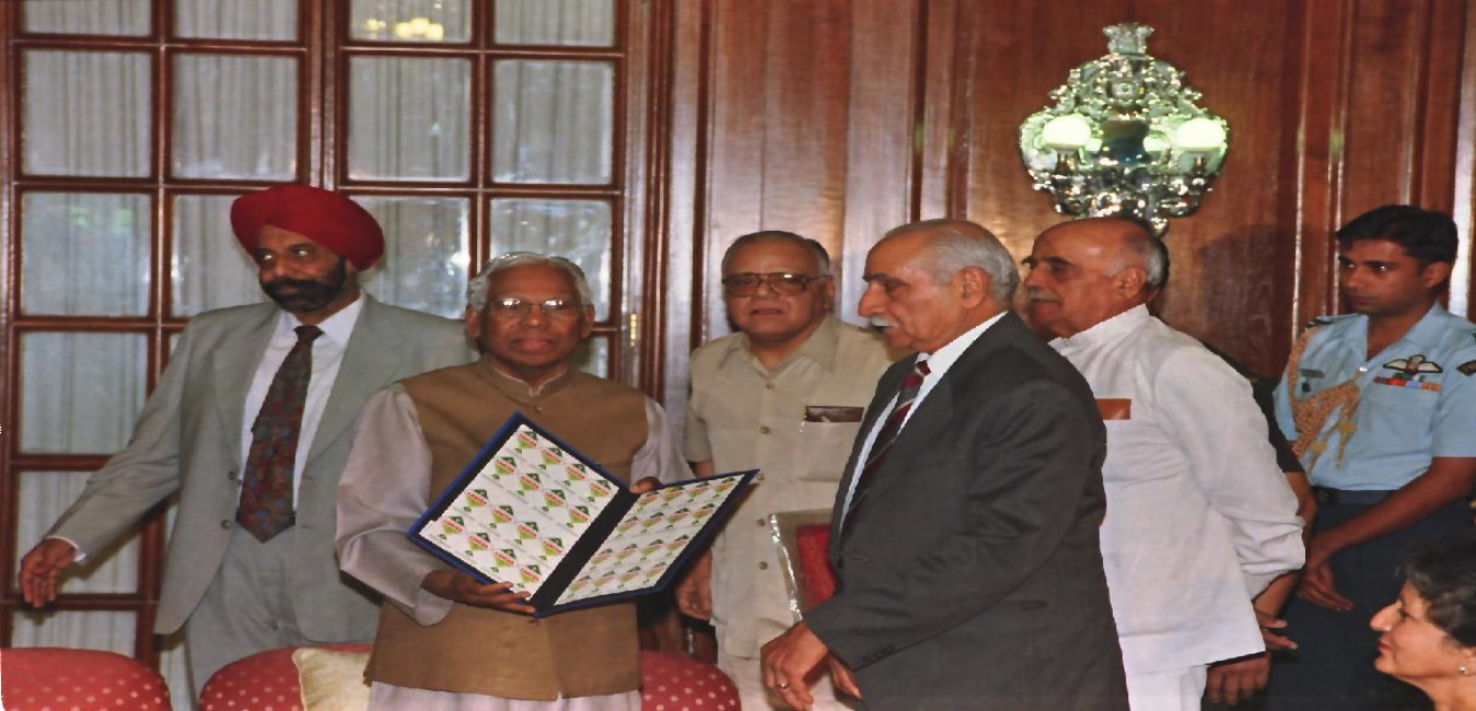 The President of India, Shri K R Narayanan receiving a copy of the Book "The Philosophy of Dr B R Ambedkar" Brought Out by Dr B R Ambedkar Study Circle Chandigarh at the Morning Room of Rashtrapati Bhavan in New Delhi on Aug 21, 1999
