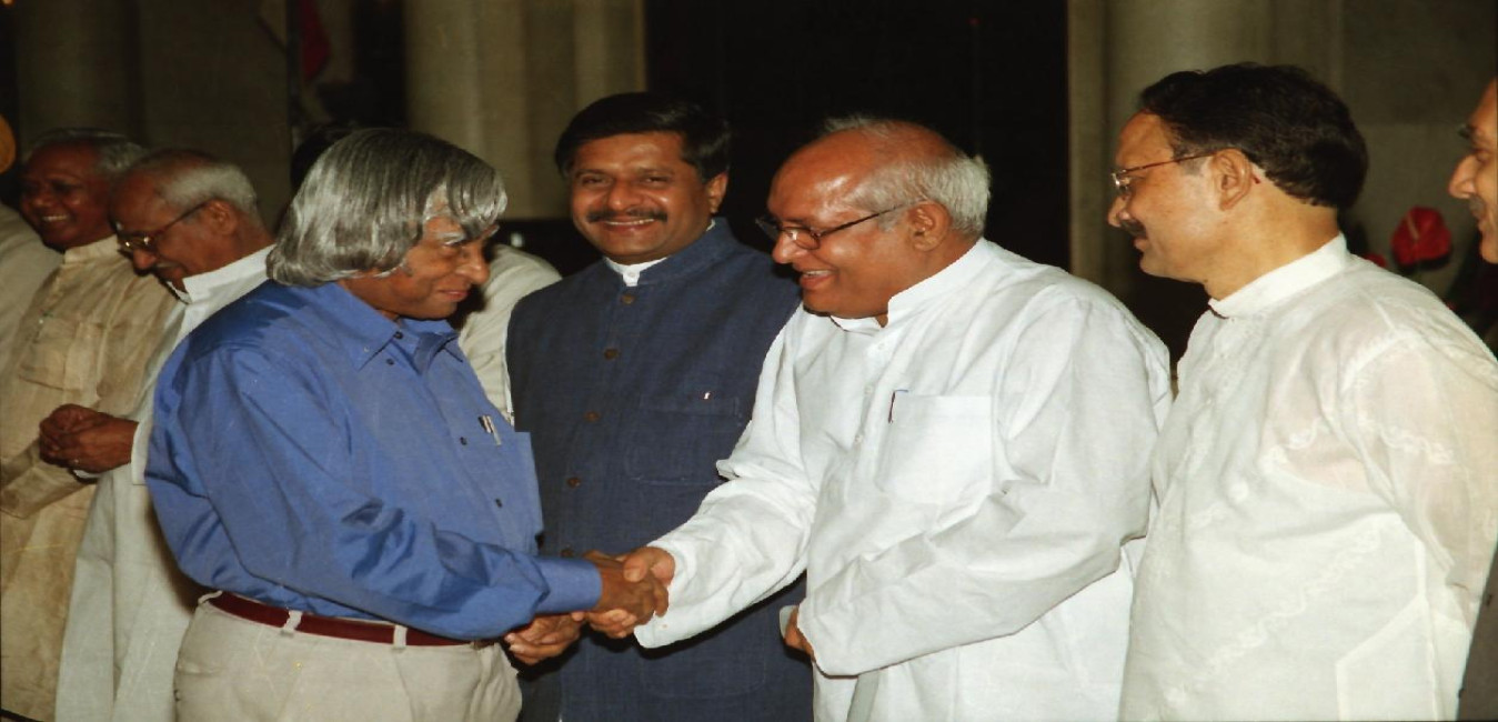 The President of India, Dr A P J Abdul Kalam hosting Dinner to the Vice President of India, Shri Bhairon Singh Shekhawat and Council of Ministers at the Banquet Hall on New Delhi on Aug 22, 2002