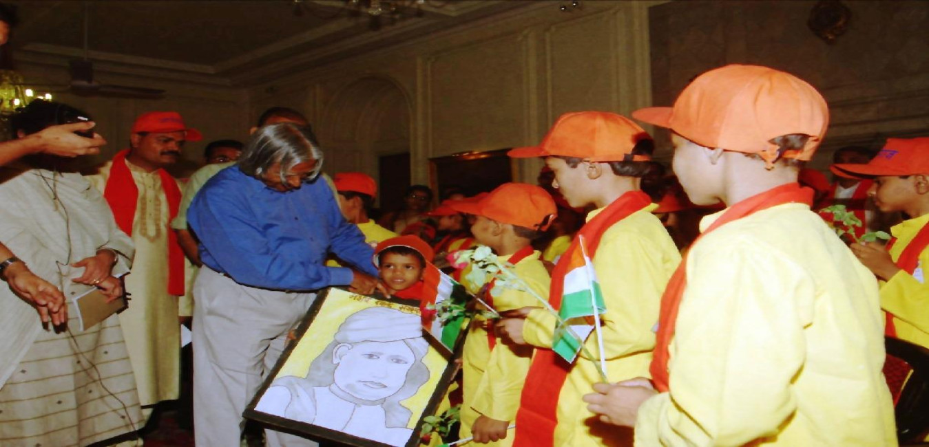The Students and Teachers from Jnana Prabodhini Navanagar Vidyalaya Pune calling on the President of India, Dr A P J Abdul Kalam at the Yellow Drawing Room of Rashtrapati Bhavan in New Delhi on April 22, 2003