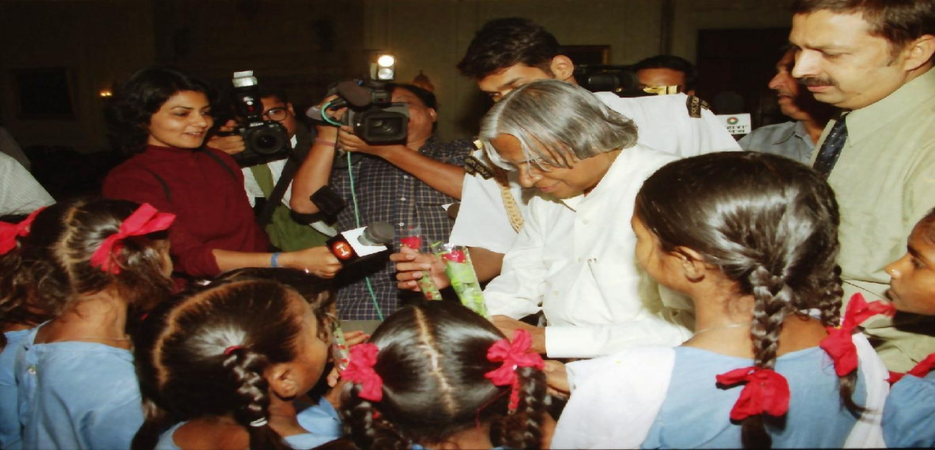 The President of India, Dr A P J Abdul Kalam meeting with the Children and Officials of Allahabad Sporting Club at the Yellow Drawing Room of Rashtrapati Bhavan in New Delhi on Feb 18, 2003
