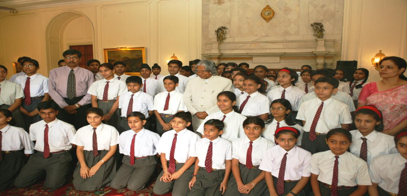 The Students from Aggarsain Public School Kurukshetra calling on the President of India, Dr A P J Abdul Kalam at the Yellow Drawing Room of Rashtrapati Bhavan in New Delhi on April 23, 2004