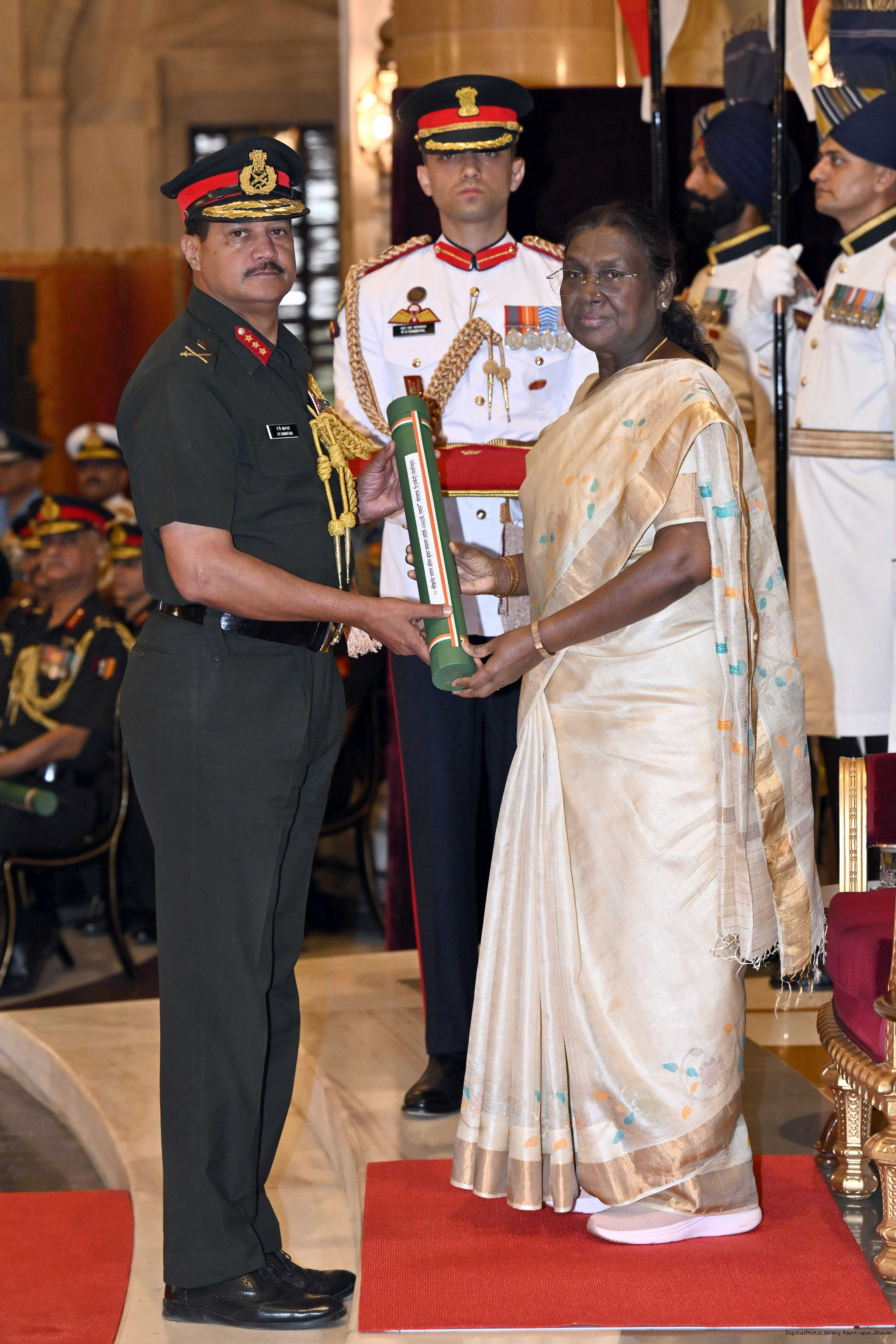 The President of India, Smt Droupadi Murmu presented Distinguished Service Awards at the Defence Investiture Ceremony-II held at Rashtrapati Bhavan on June 4, 2025.
