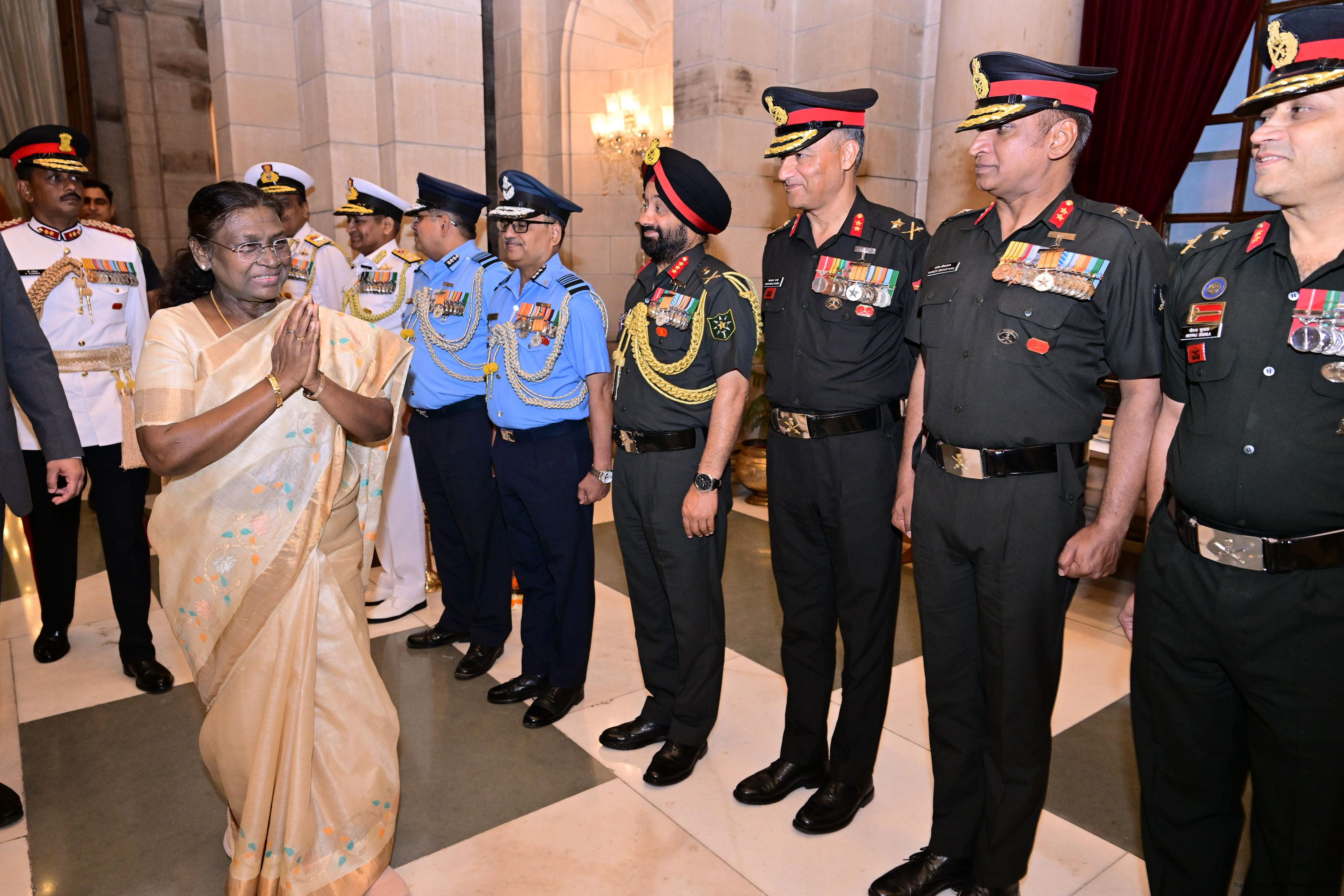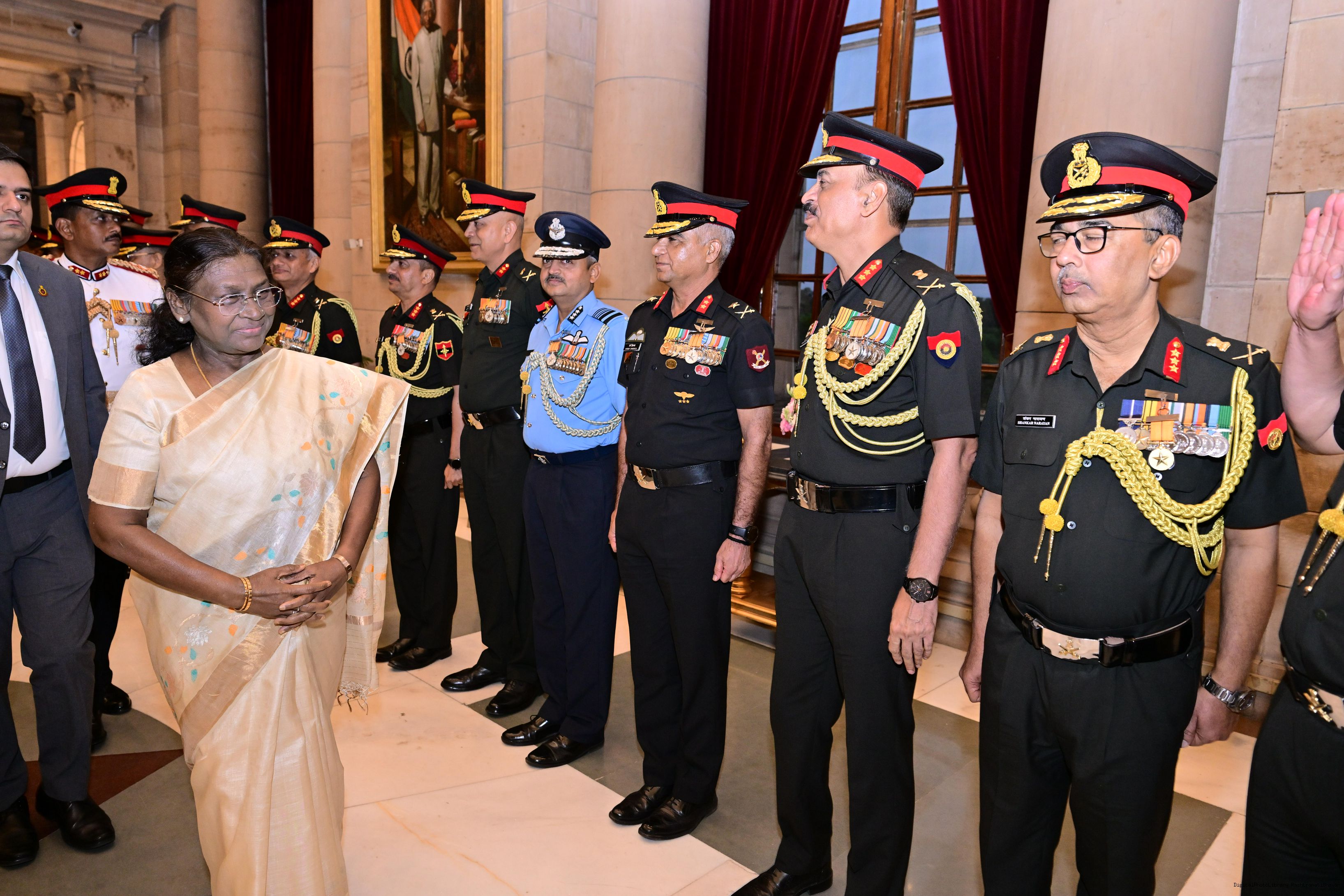 The President of India, Smt Droupadi Murmu presented Distinguished Service Awards at the Defence Investiture Ceremony-II held at Rashtrapati Bhavan on June 4, 2025.