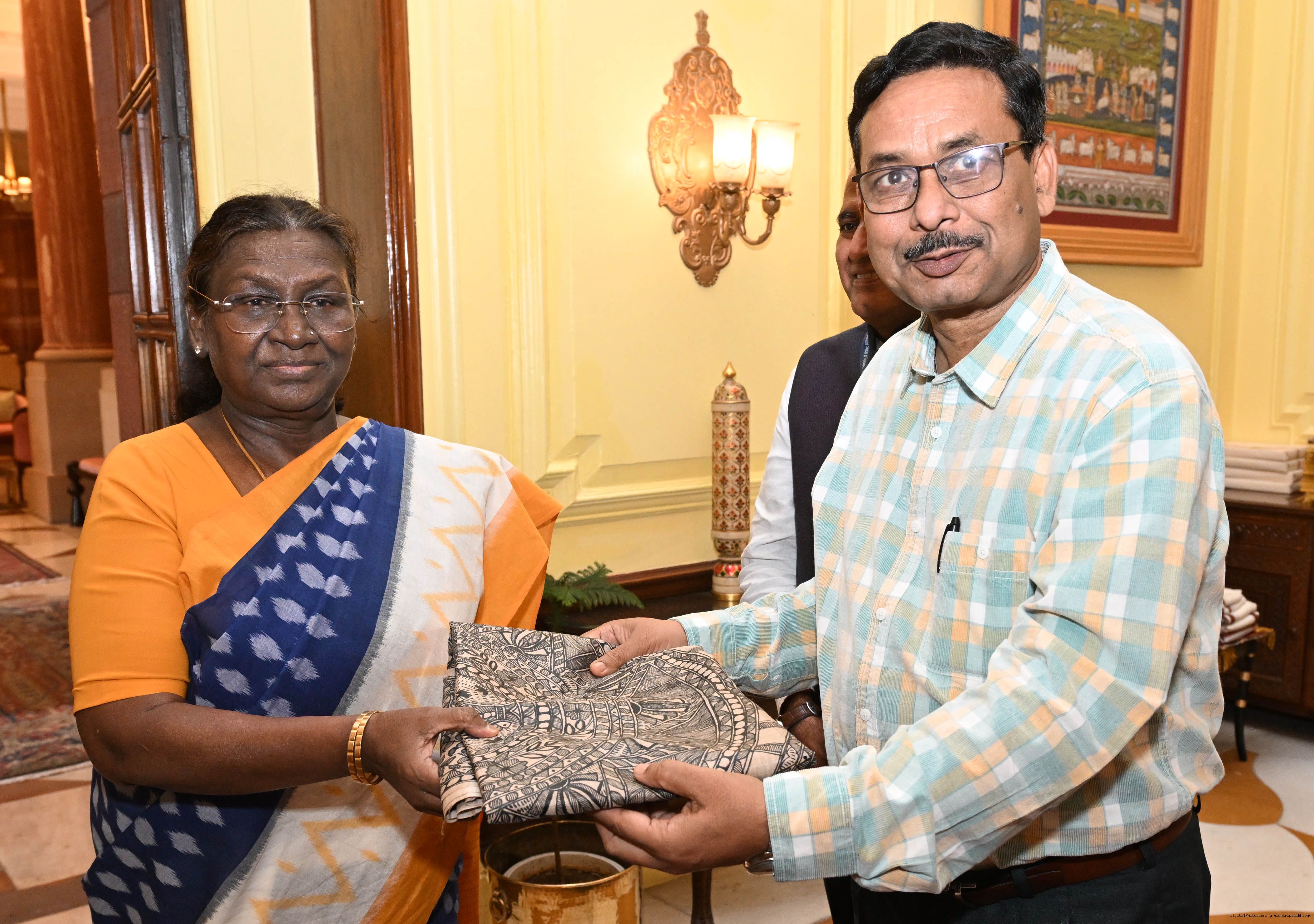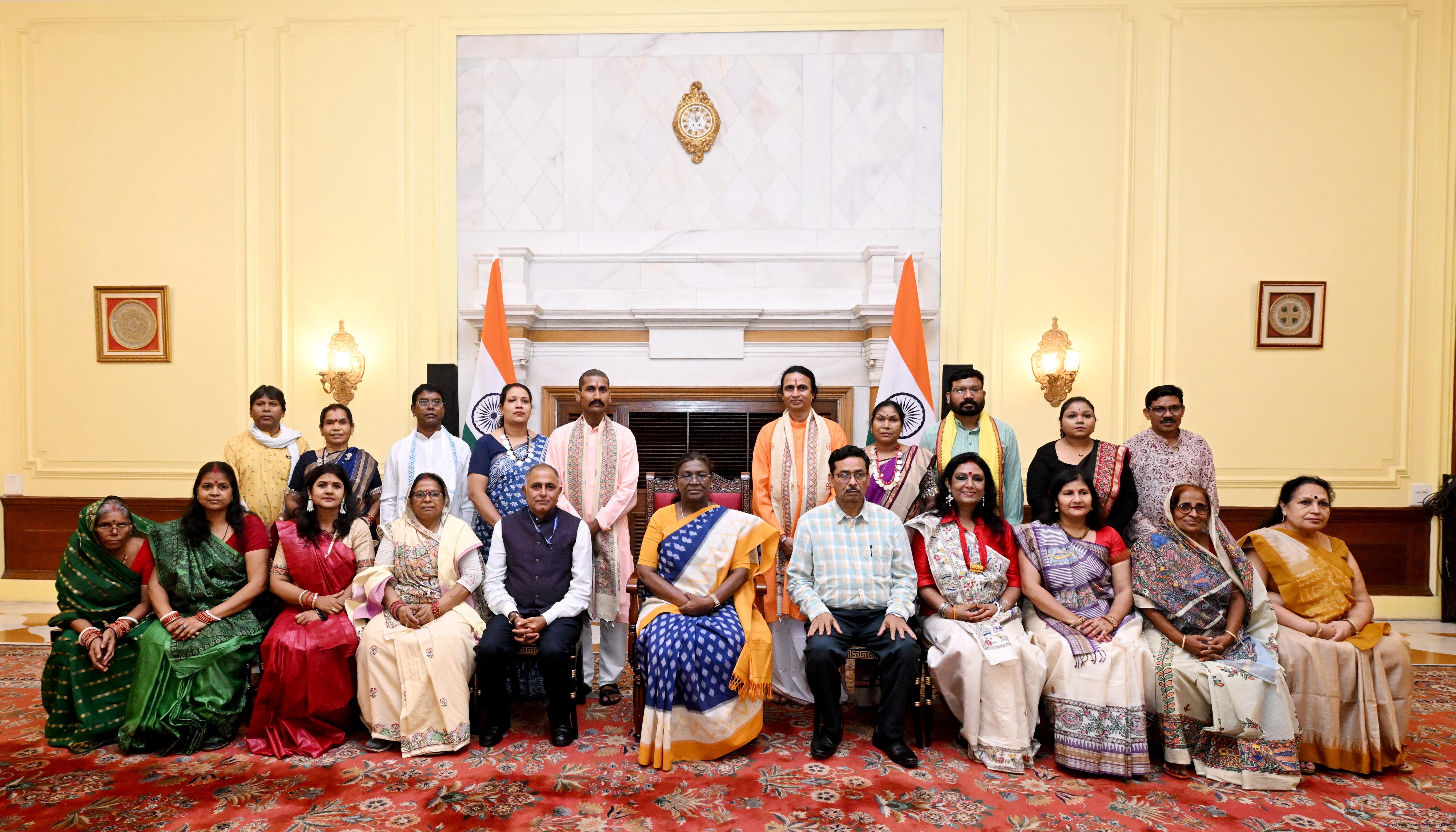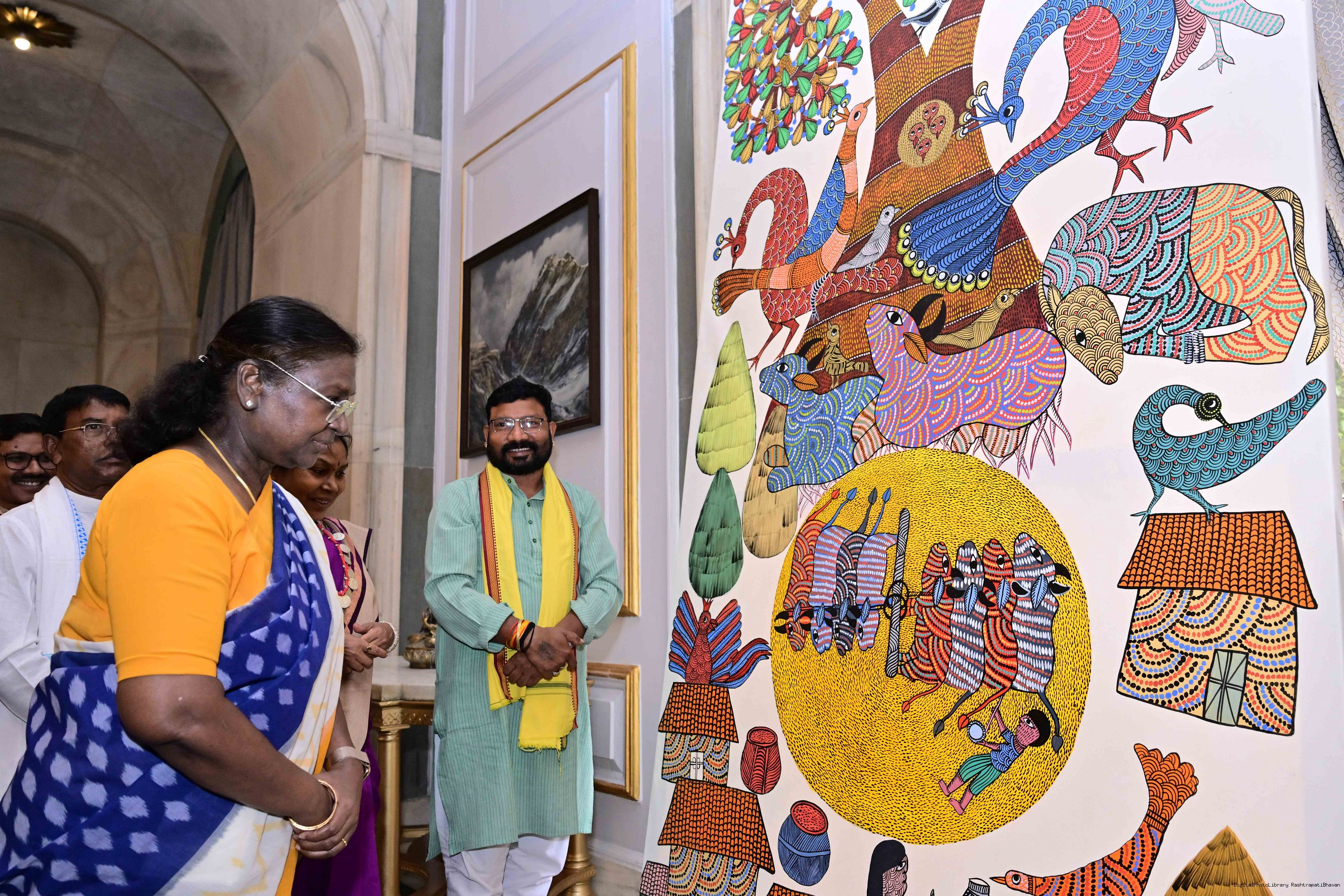 A group of artists of Gond Art and Madhubani Art called on the President of India, Smt. Droupadi Murmu at Rashtrapati Bhavan on May 26, 2025.