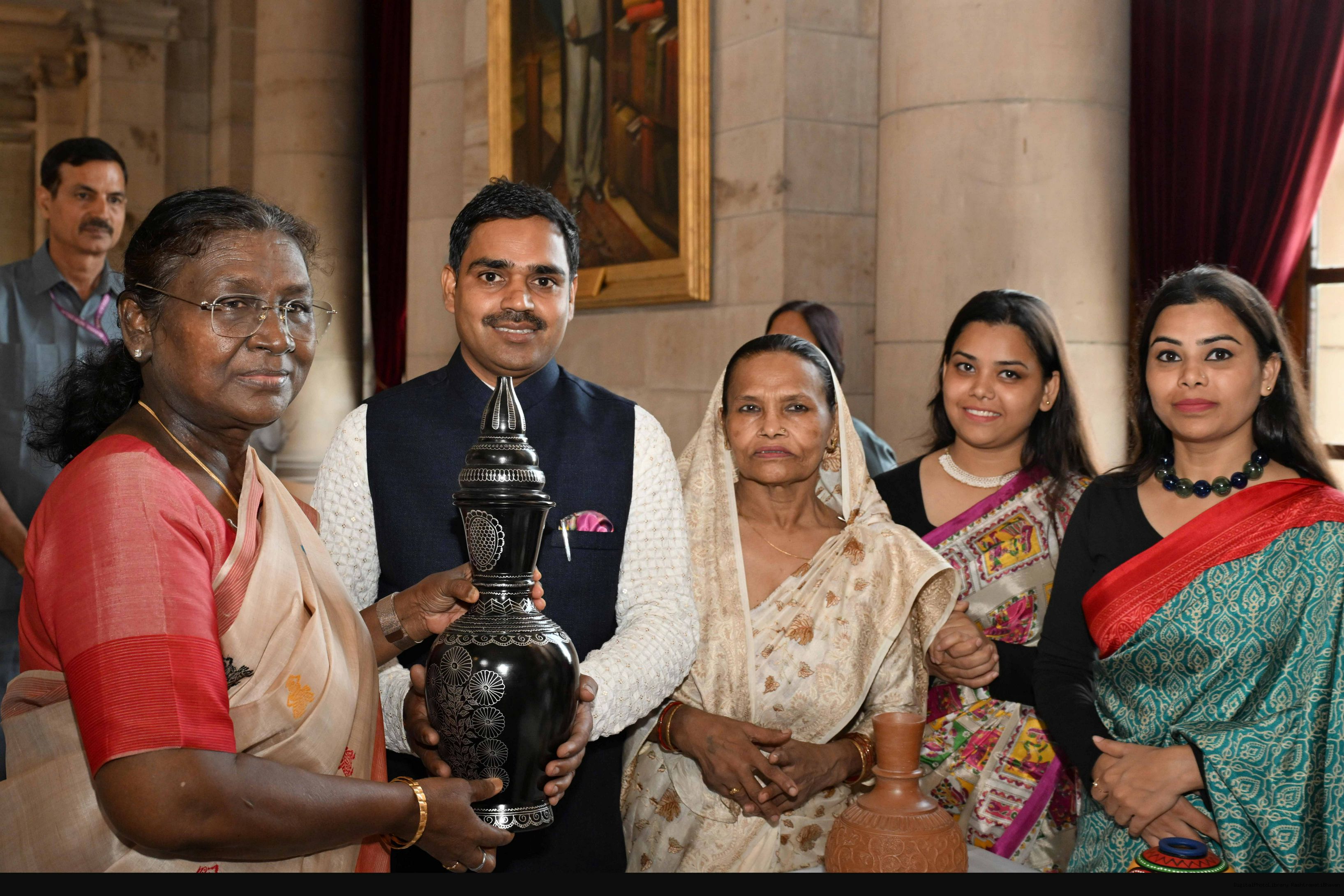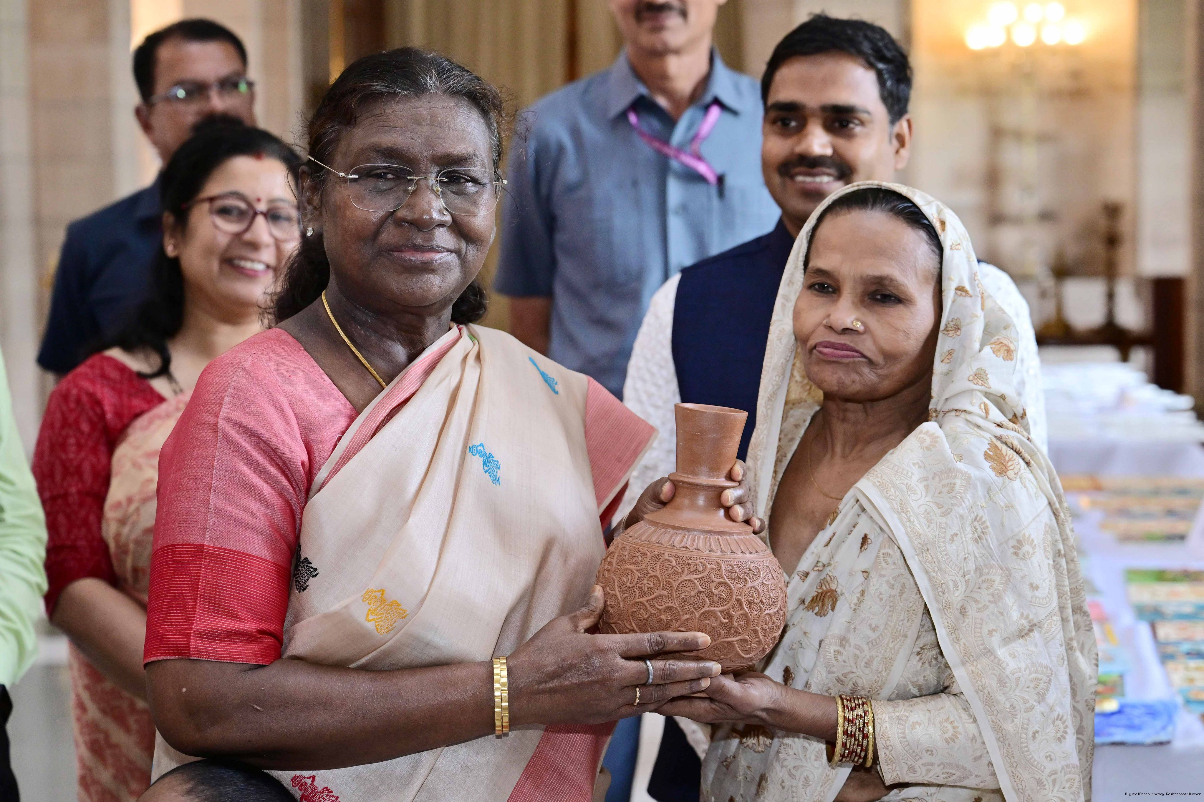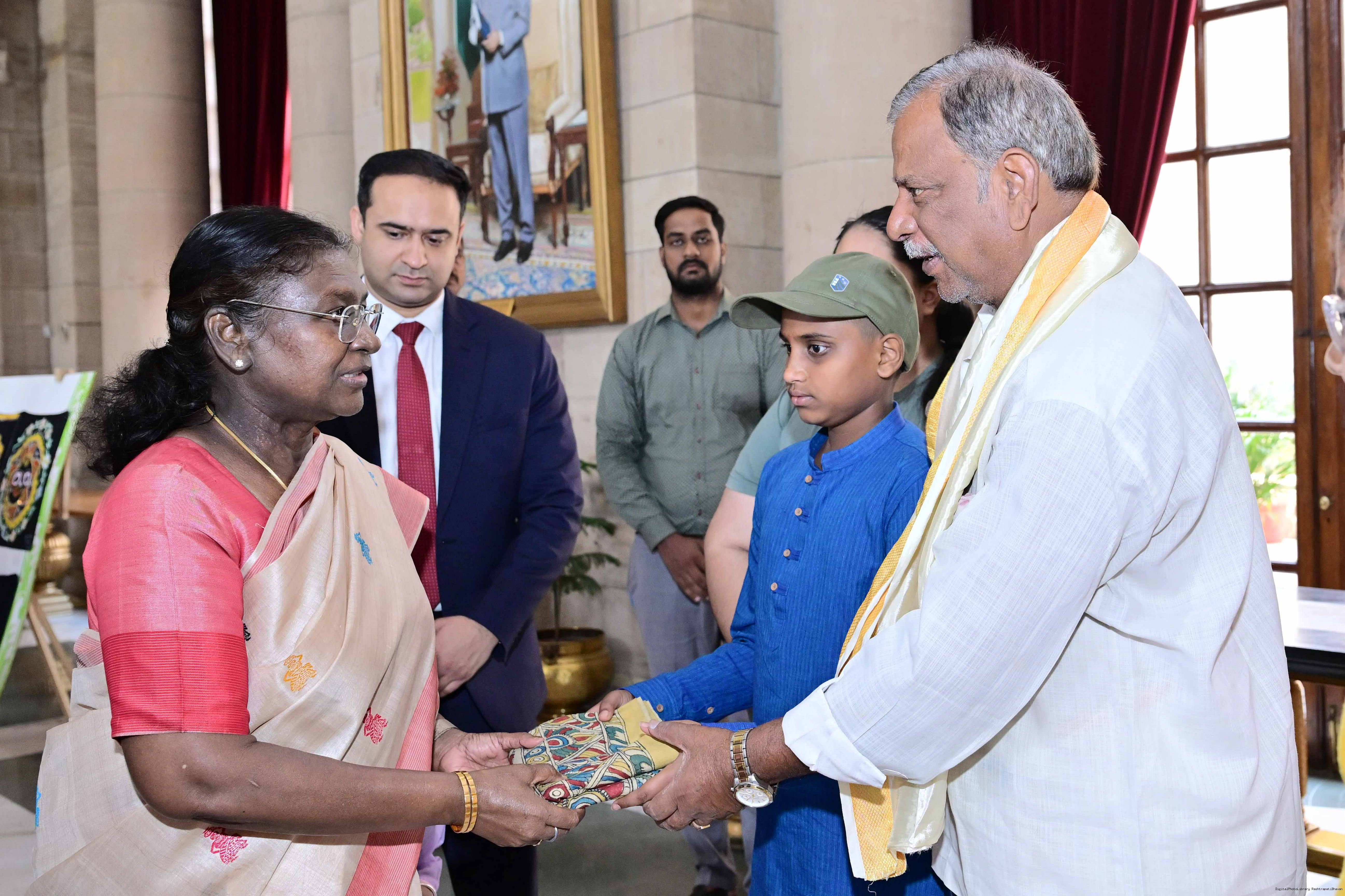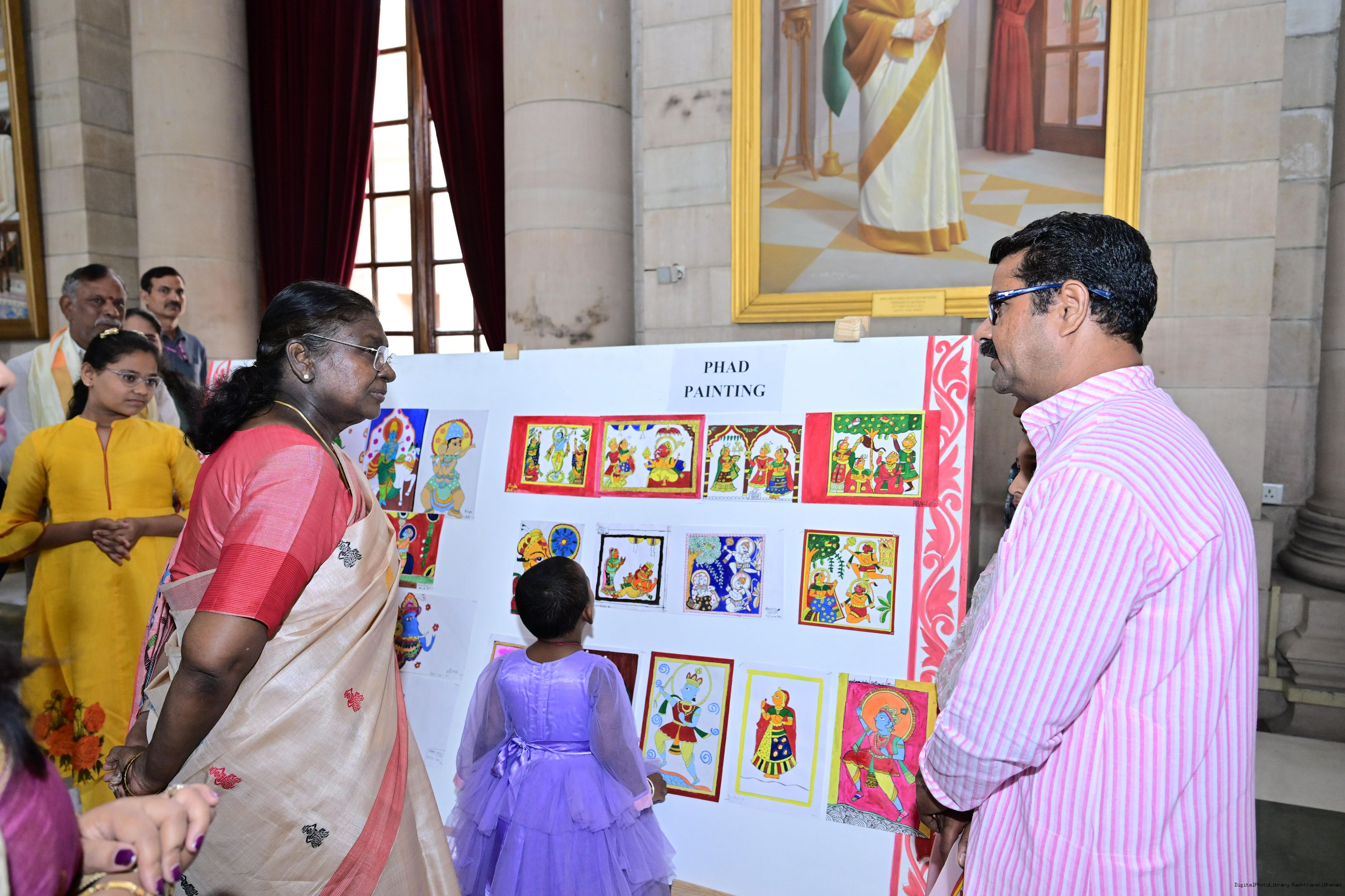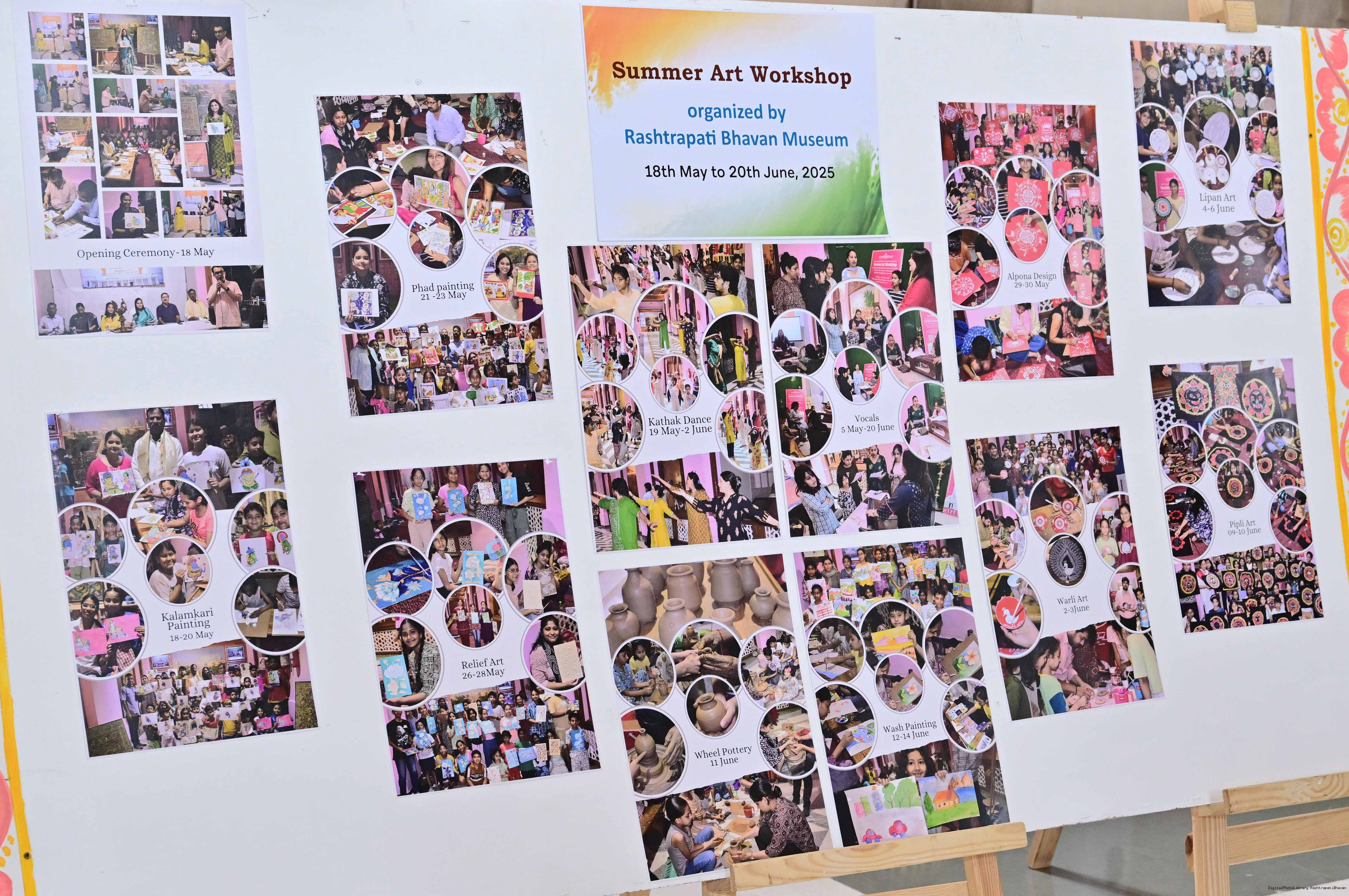 The President of India, Smt Droupadi Murmu interacted with photo opportunity with around 70 children from the Summer Workshop at President's Estate at Rashtrapati Bhavan on June 27, 2025.