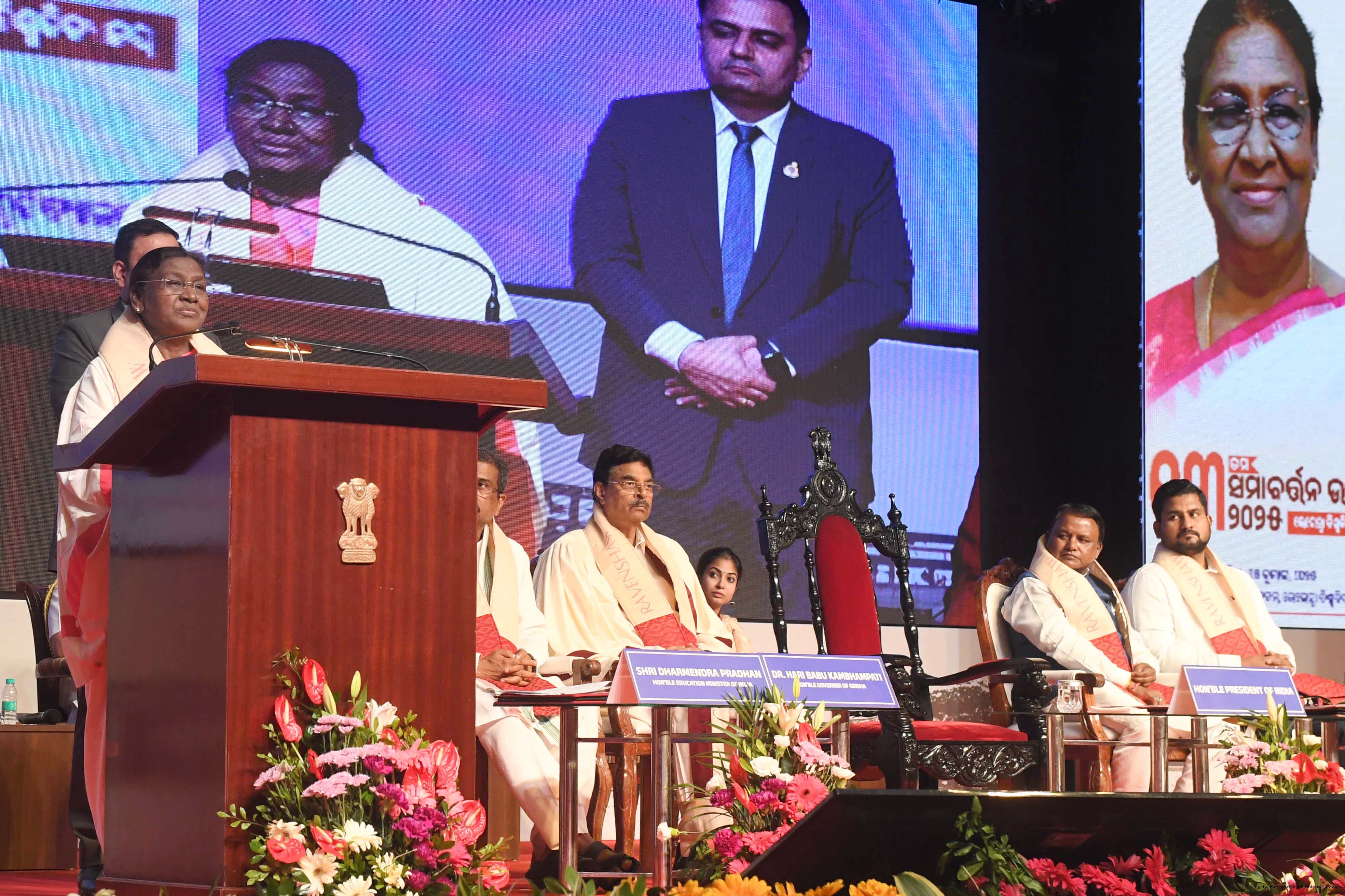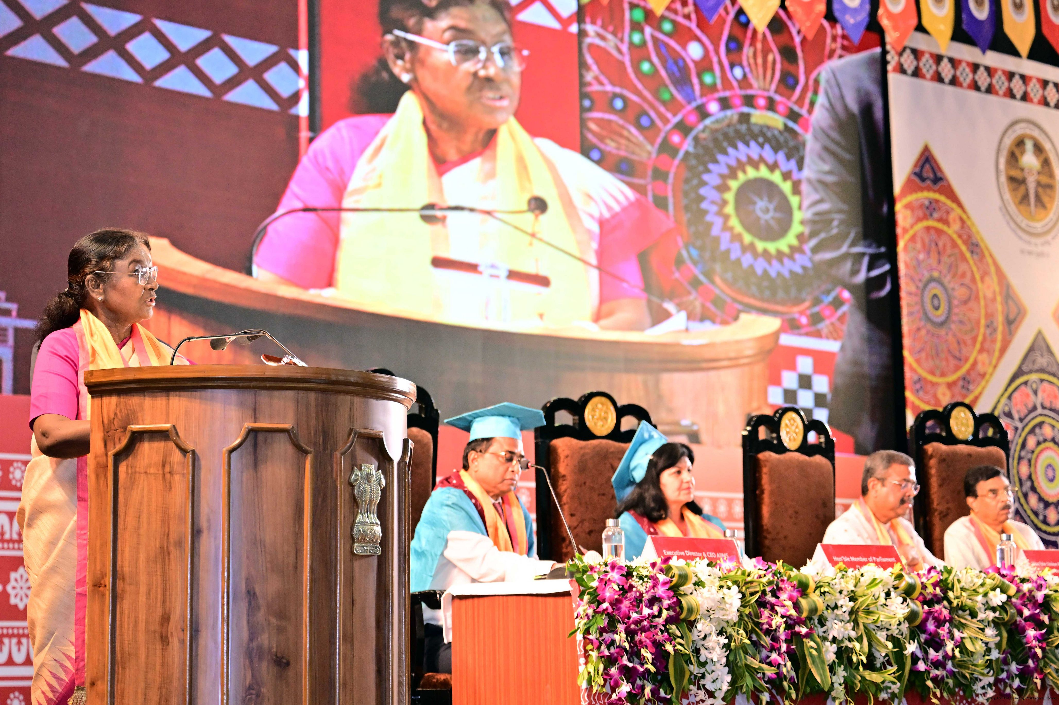 The President of India, Smt Droupadi Murmu, graced the convocation ceremony of Ravenshaw University at Cuttack, Odisha on July 15, 2025.