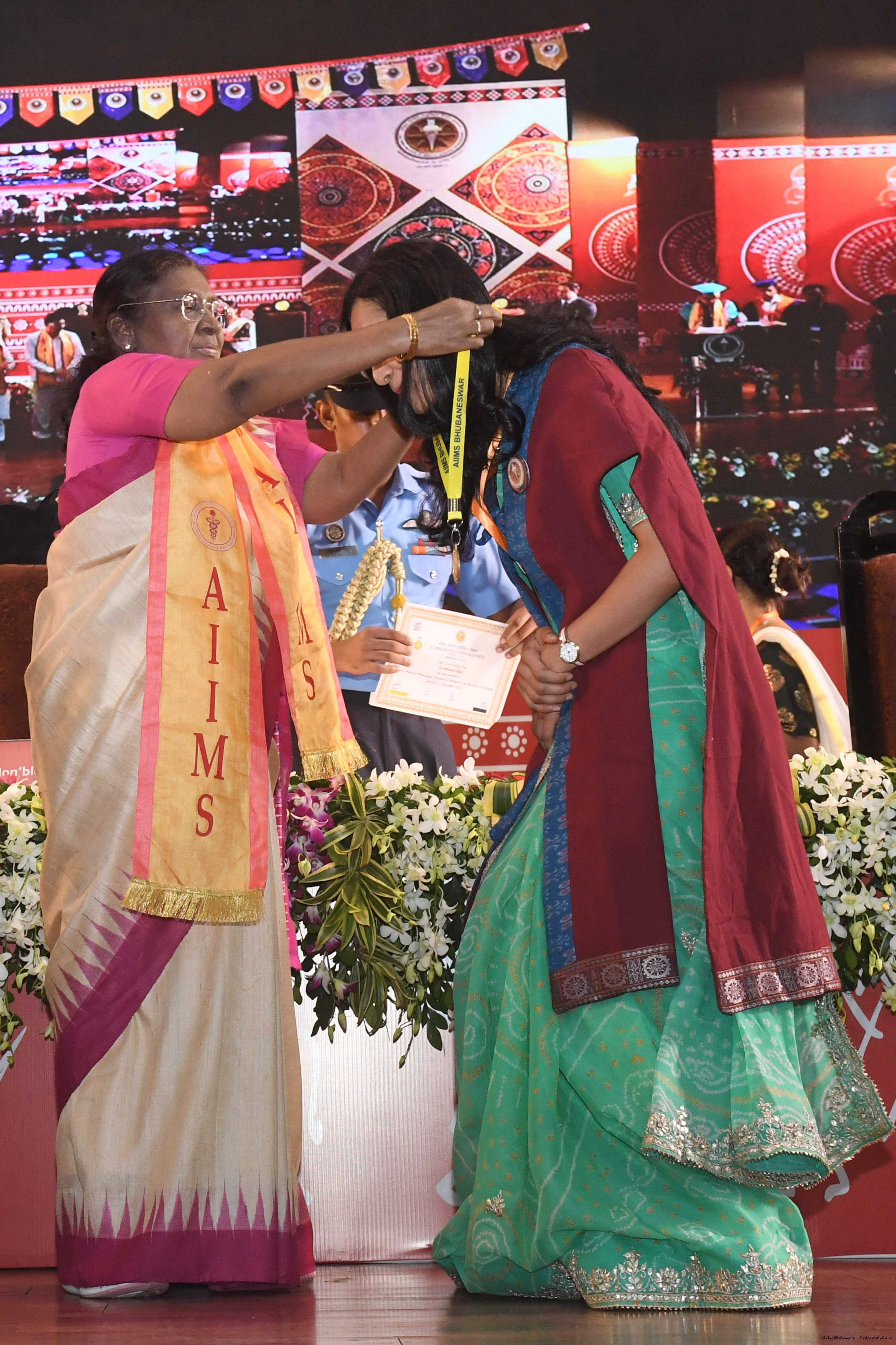The President of India, Smt Droupadi Murmu, graced the fifth convocation ceremony of AIIMS, Bhubaneswar, at Bhubaneswar, Odisha on July 14, 2025.