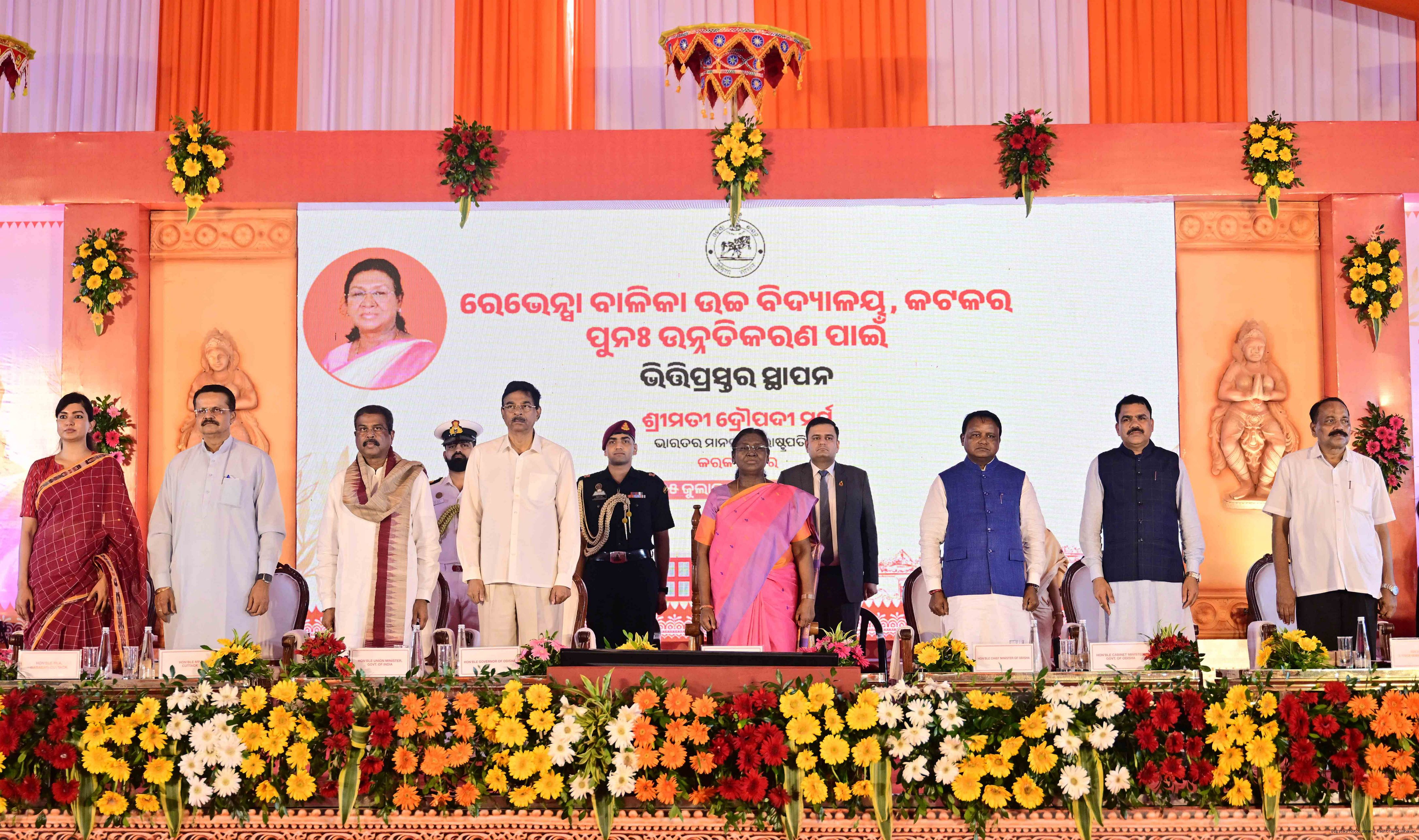 The President of India, Smt Droupadi Murmu laid the foundation stone for the redevelopment of three buildings of Ravenshaw Girls’ High School at Cuttack Odisha on July 15, 2025.