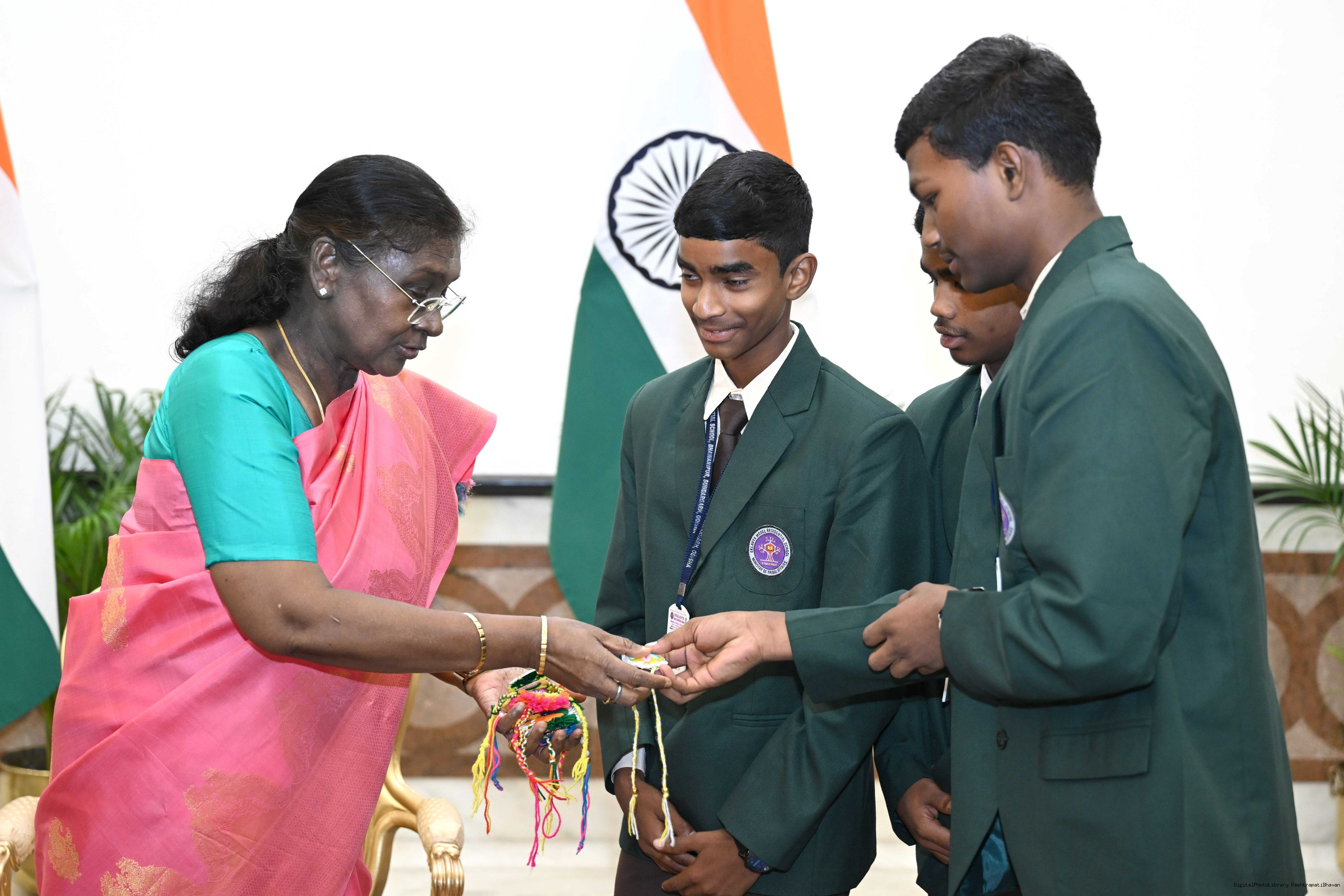 The President of India, Smt. Droupadi Murmu celebrated Raksha Bandhan with children and students at various schools and organizations at Rashtrapati Bhavan on August 9, 2025.