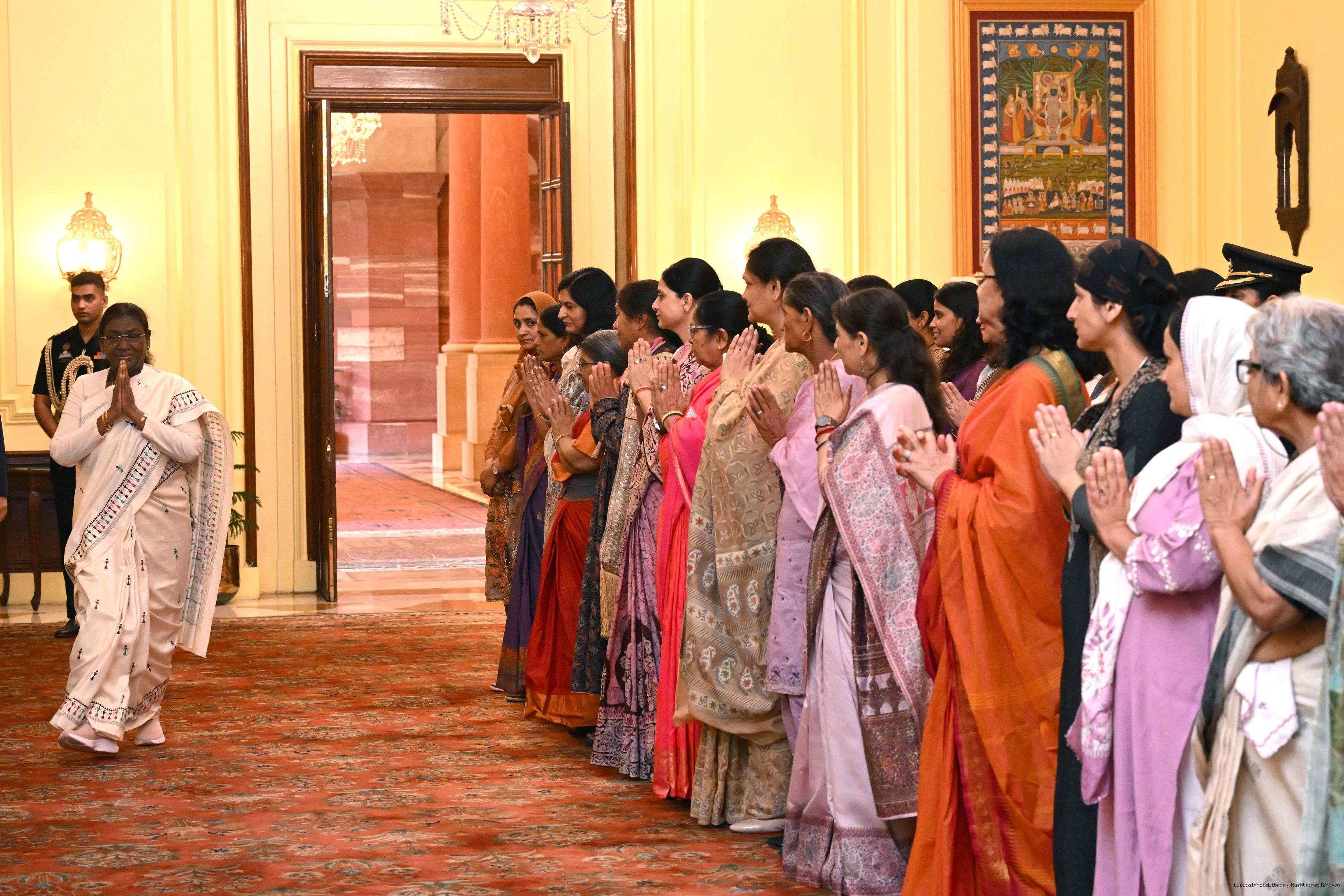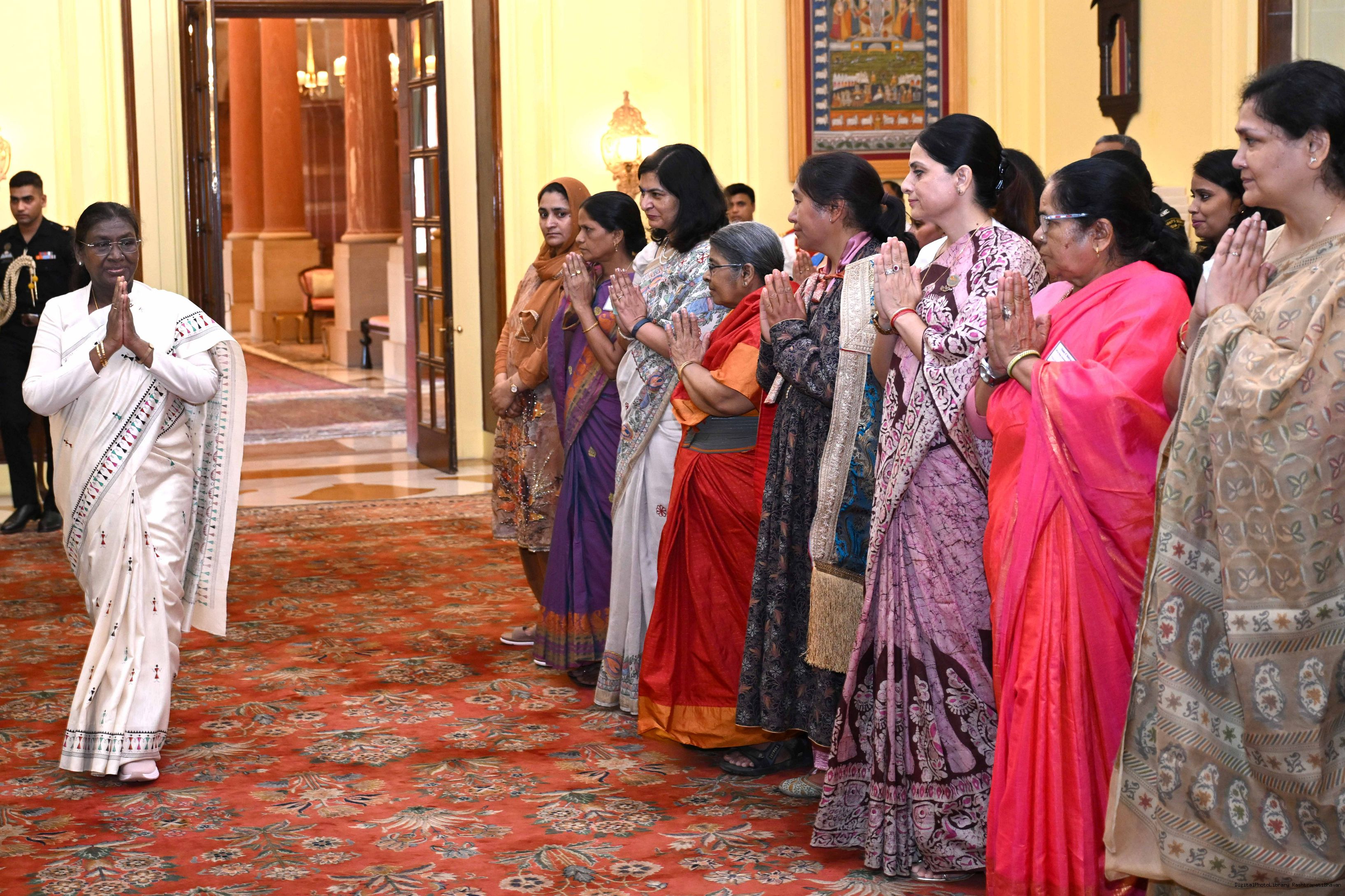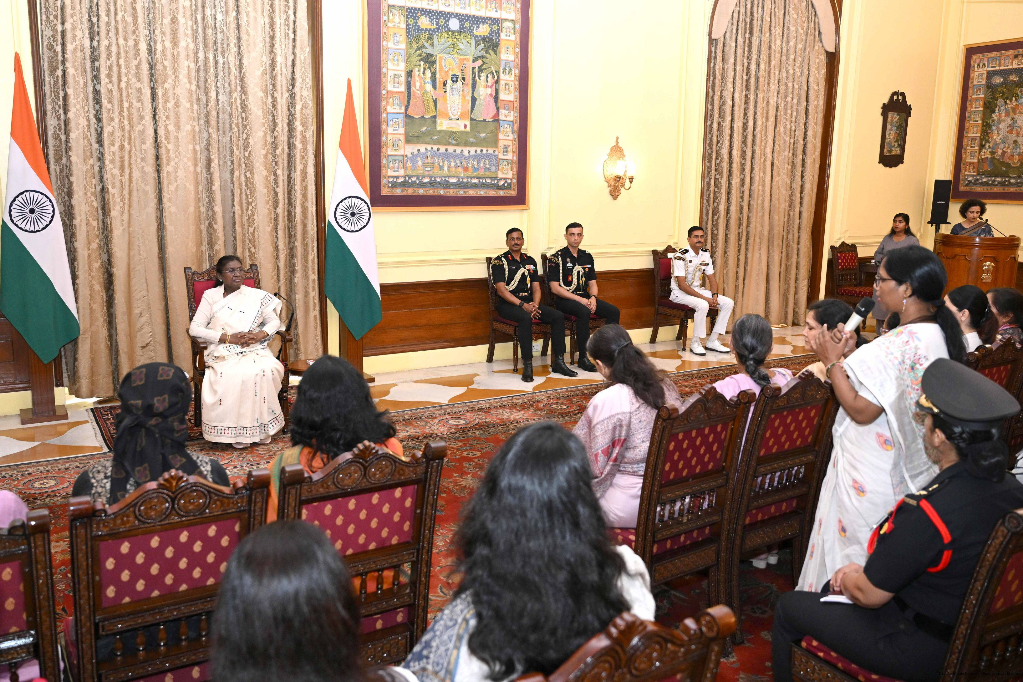 The President met and interacted with Veer Naris and widows of martyred soldiers of AWWA on July 28, 2025.