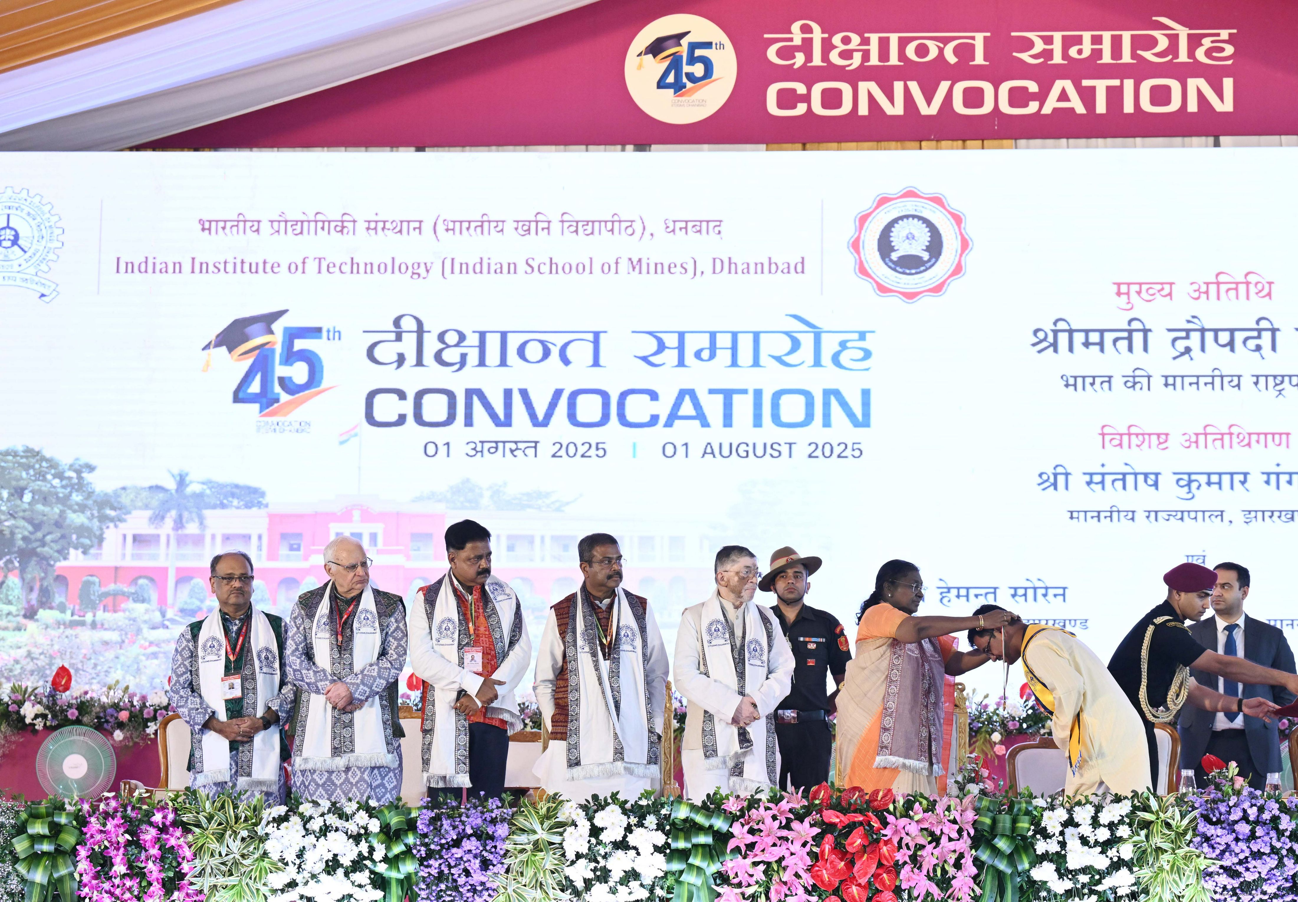 The President of India, Smt Droupadi Murmu, graced the 45th convocation ceremony of the Indian Institute of Technology (Indian School of Mines) Dhanbad at Dhanbad, Jharkhand, on August 01, 2025.