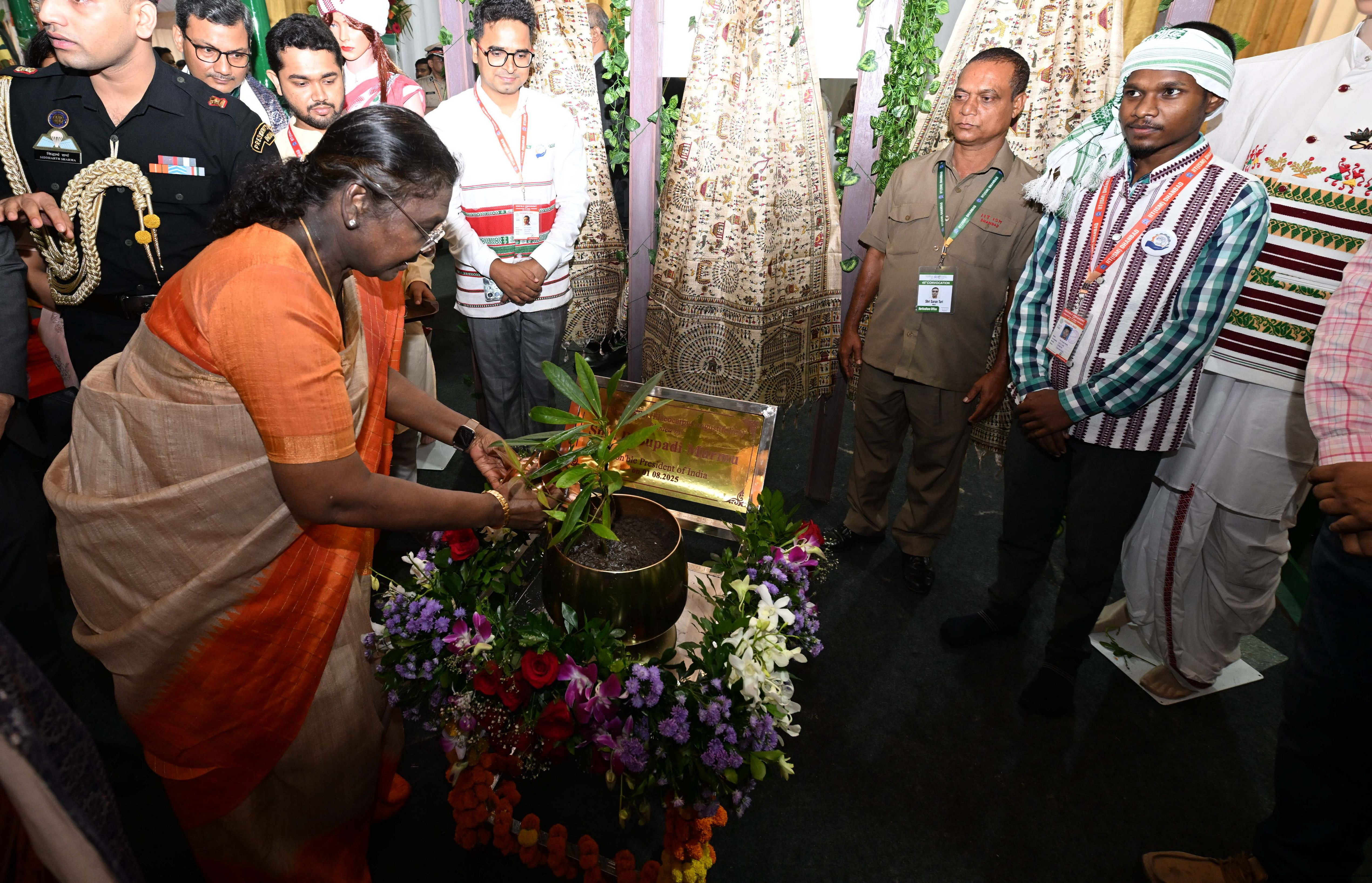 The President of India, Smt Droupadi Murmu visited Exhibition on Community Innovation by the tribul Women Working Under Atal Commmunity Innovation Centre IIT (ISM) at Dhanbad, Jharkhand on August 01, 2025.