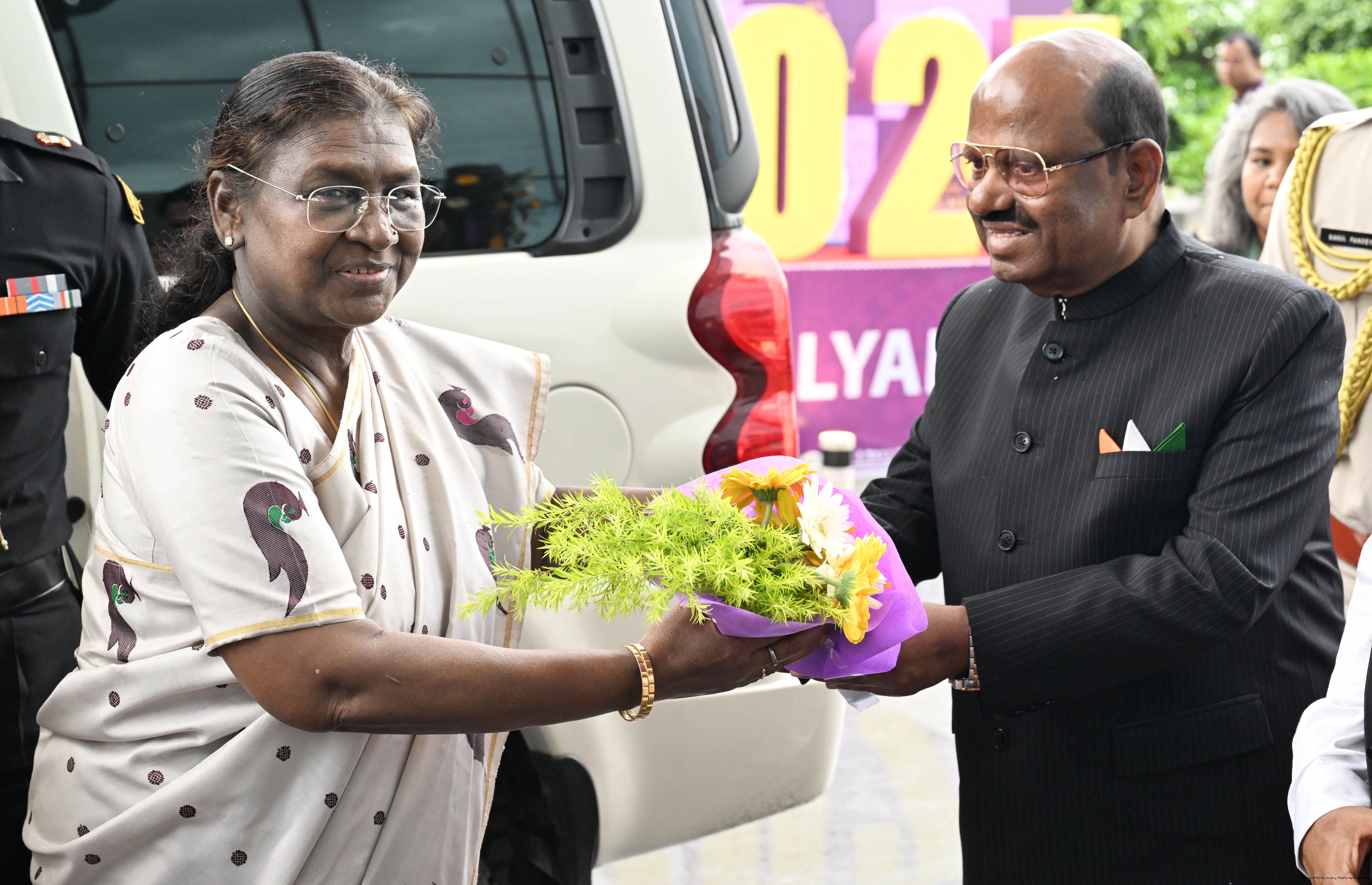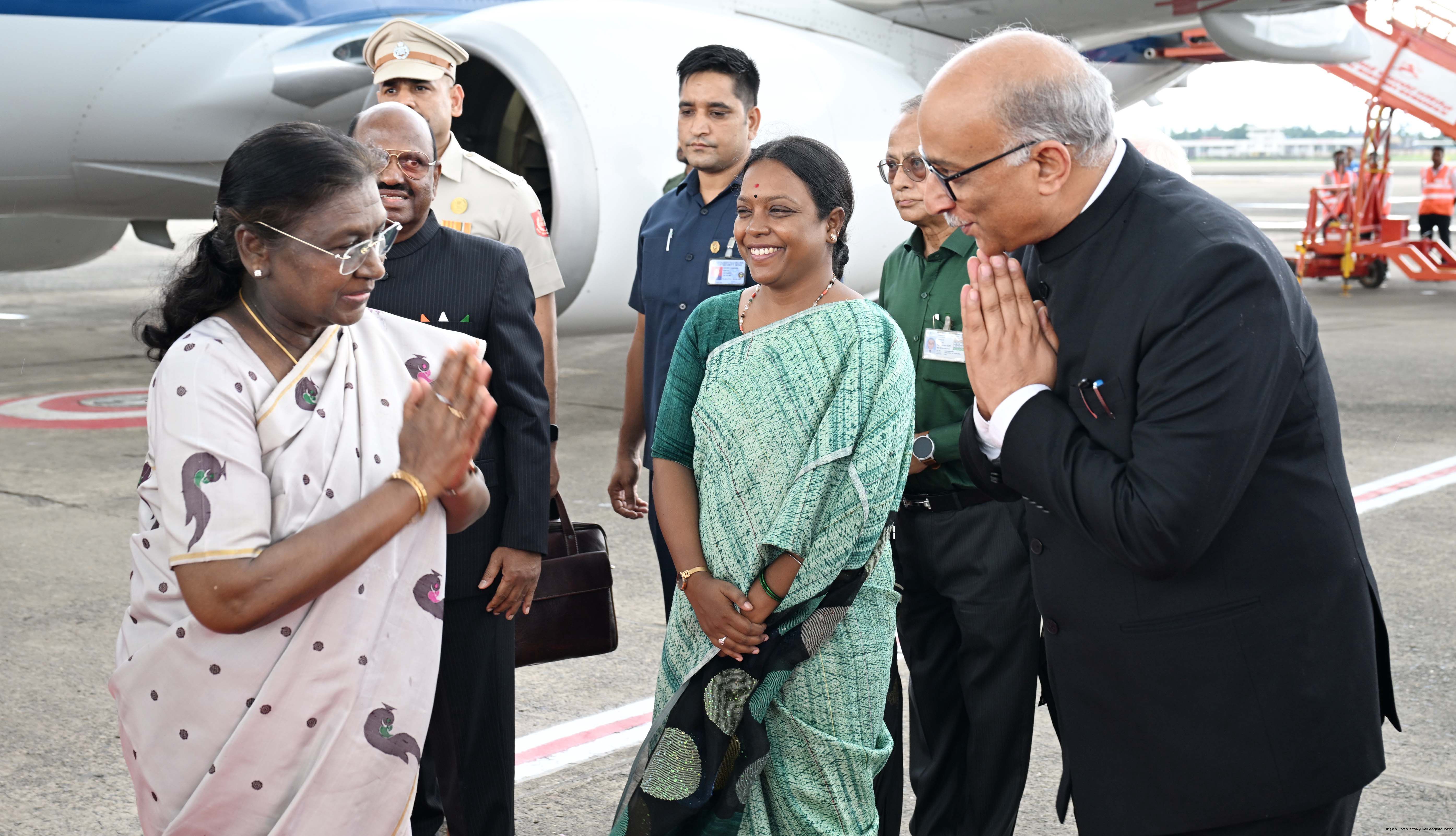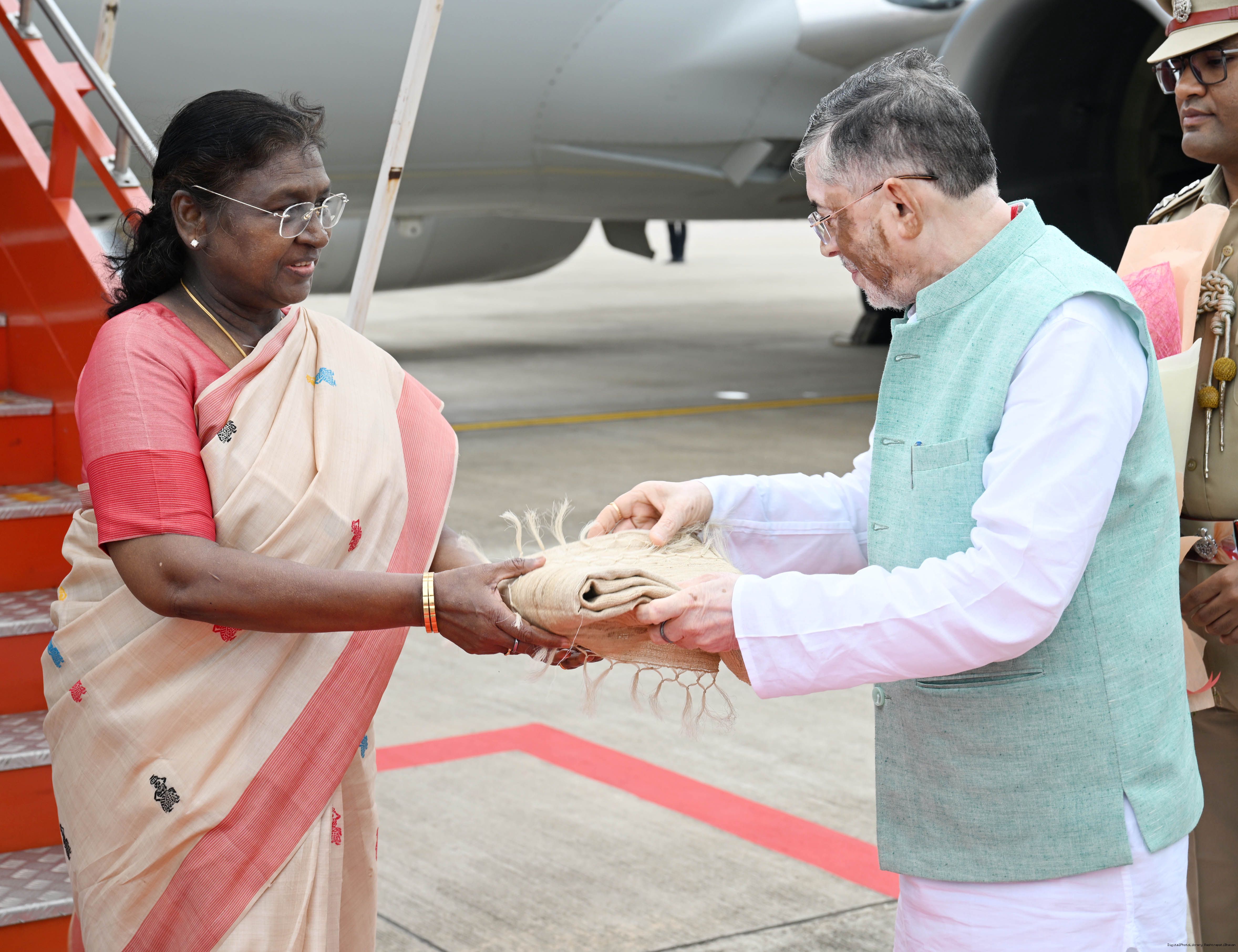 The Governor of Jharkhand, Shri Santosh Kumar Gangwar received the President of India, Smt.Droupadi Murmu on her arrival at Deoghar, Jharkhand on July 31, 2025.