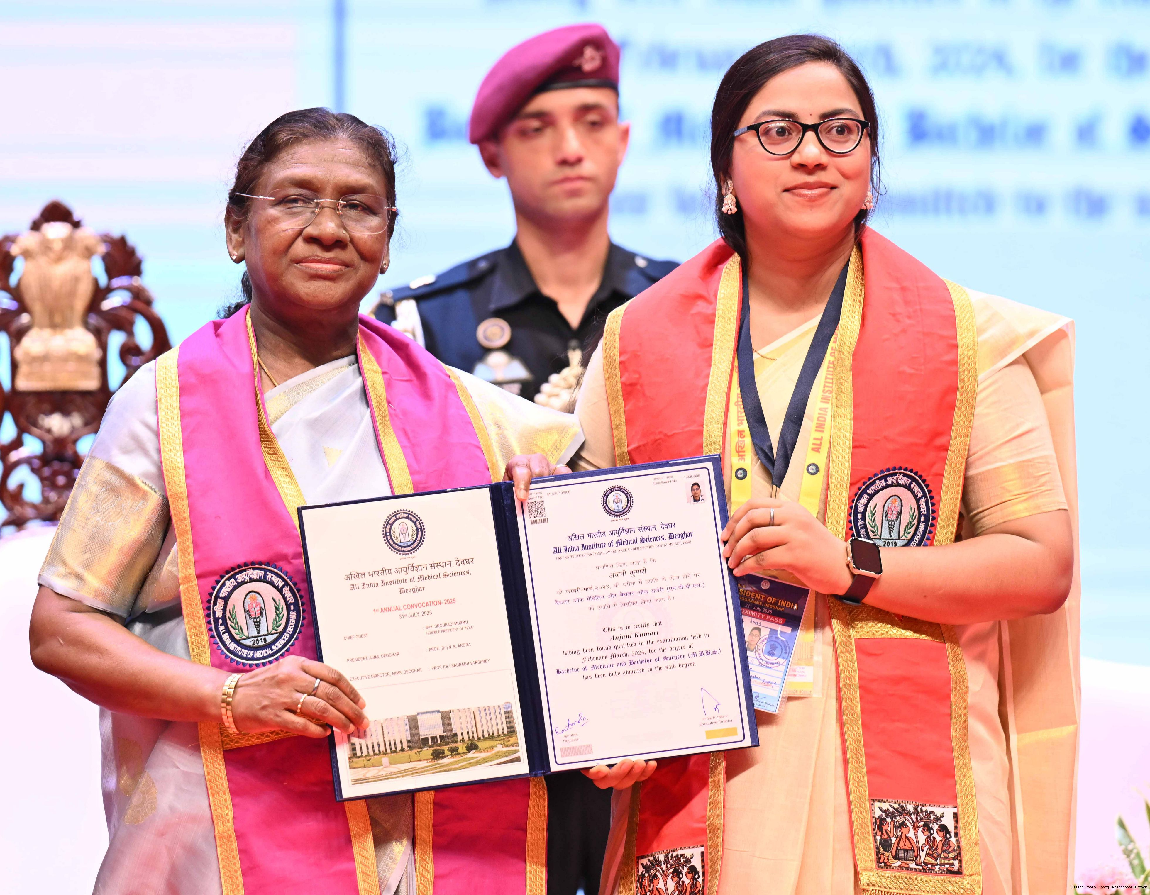 The President of India, Smt Droupadi Murmu, graced the first convocation ceremony of AIIMS, Deoghar at Deoghar, Jharkhand on July 31, 2025.