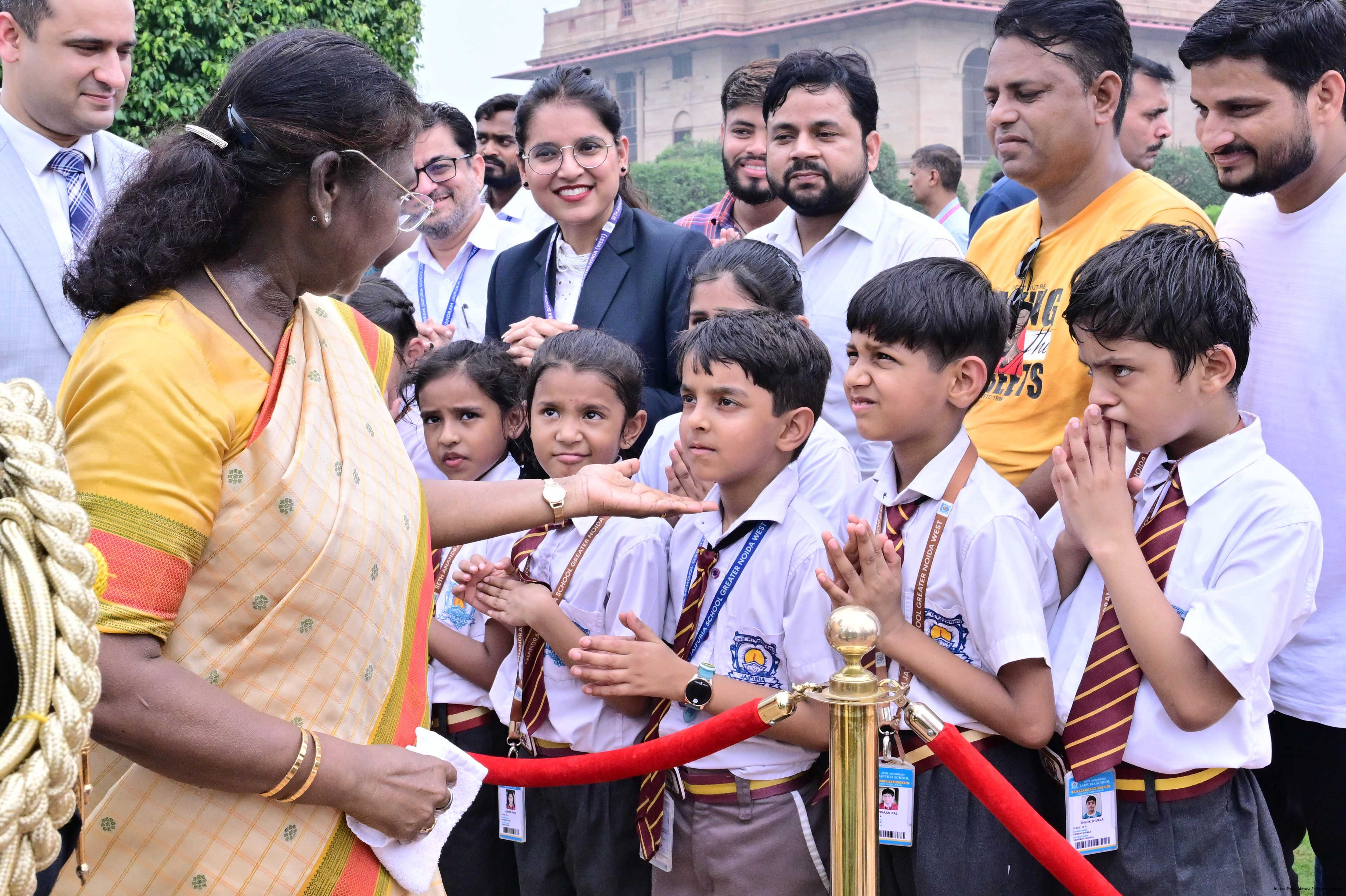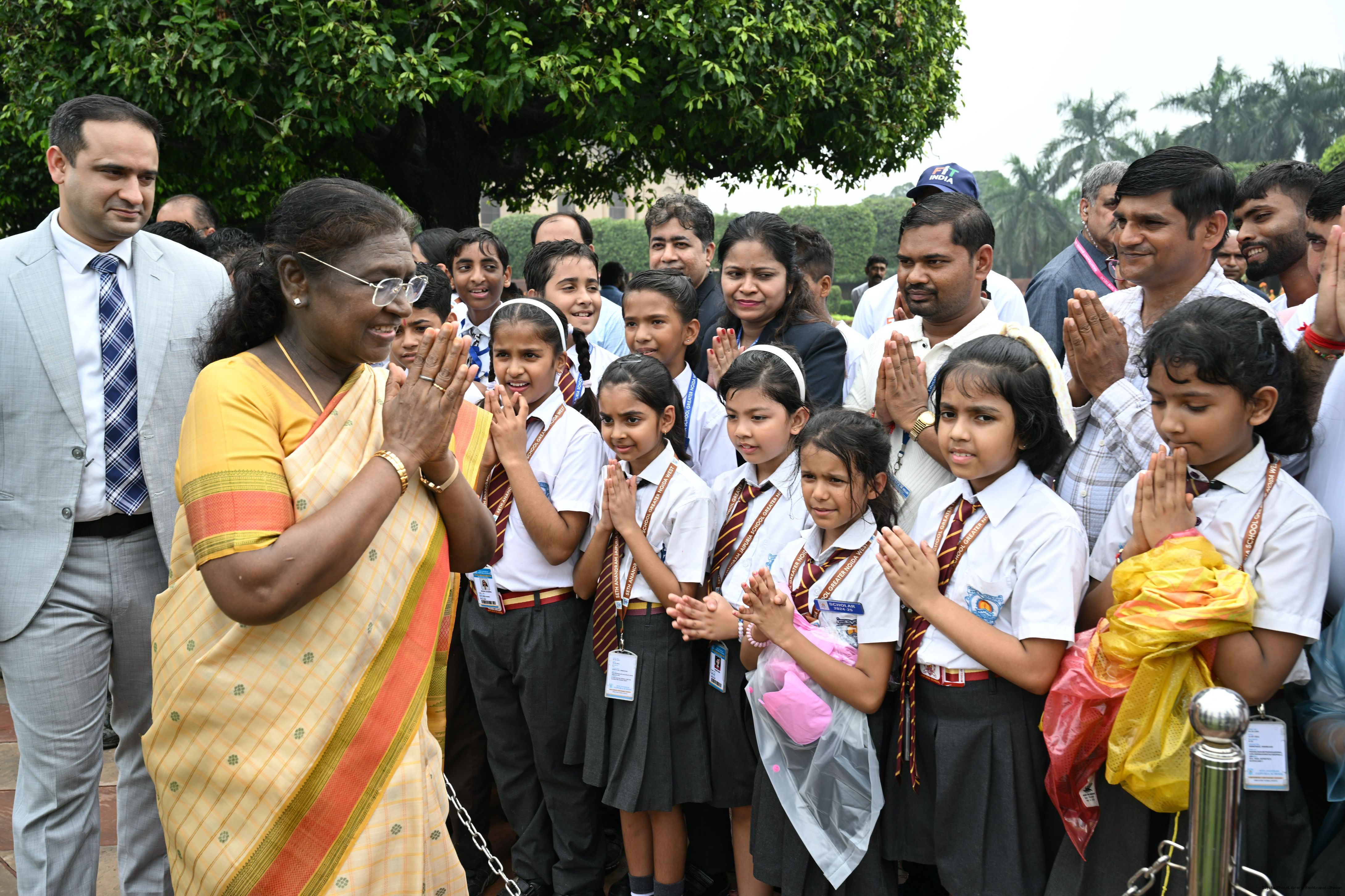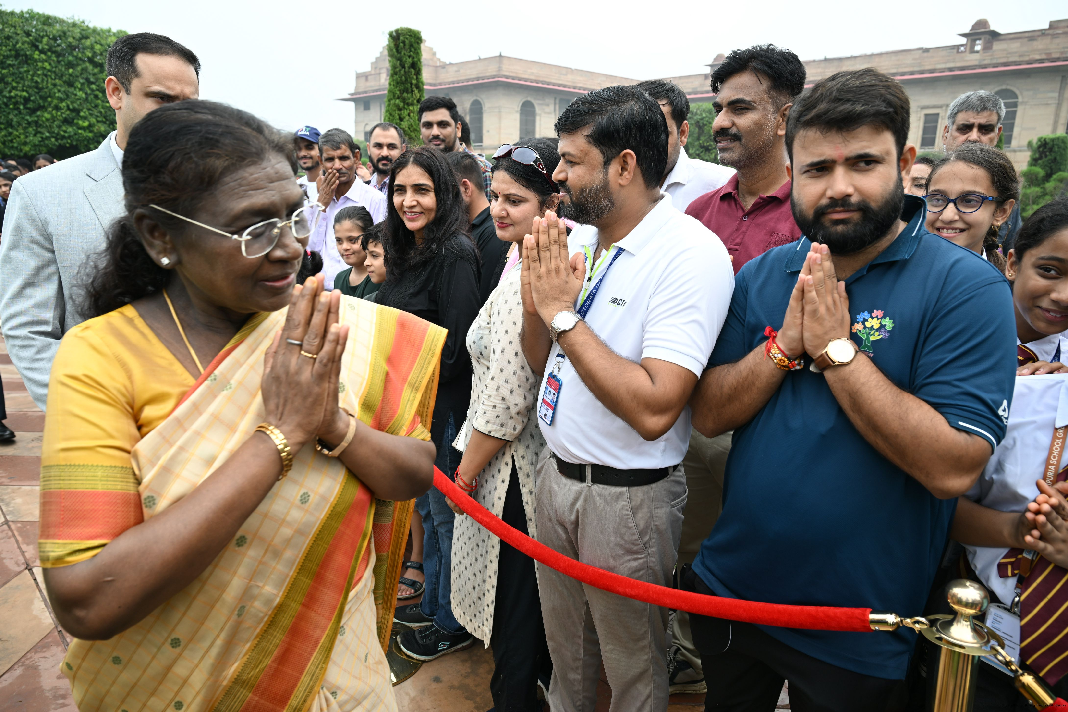 The President of India, Smt Droupadi Murmu interacted with sportspersons who visited Amrit Udyan on National Sports Day at Rashtrapati Bhavan on August 29, 2025.