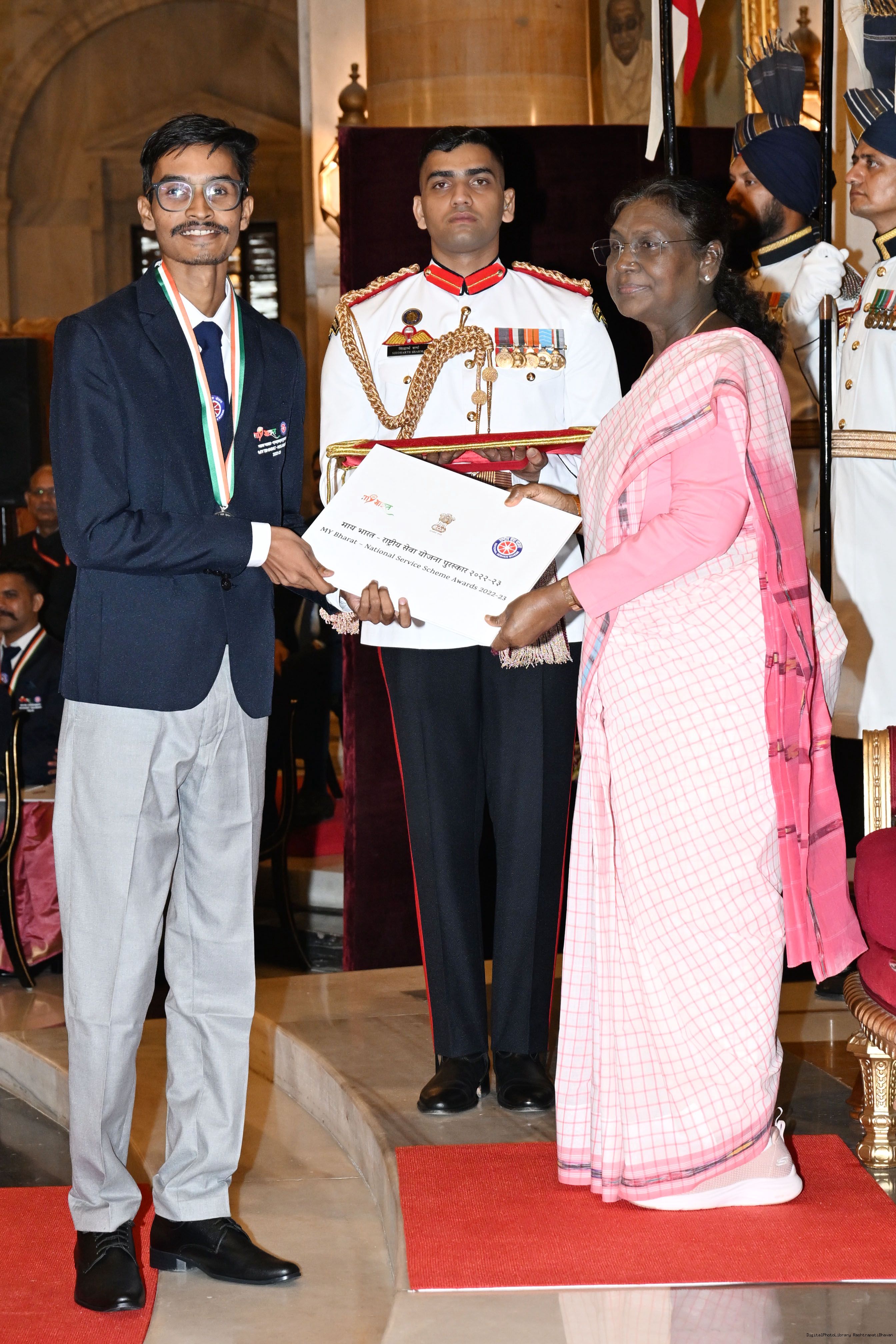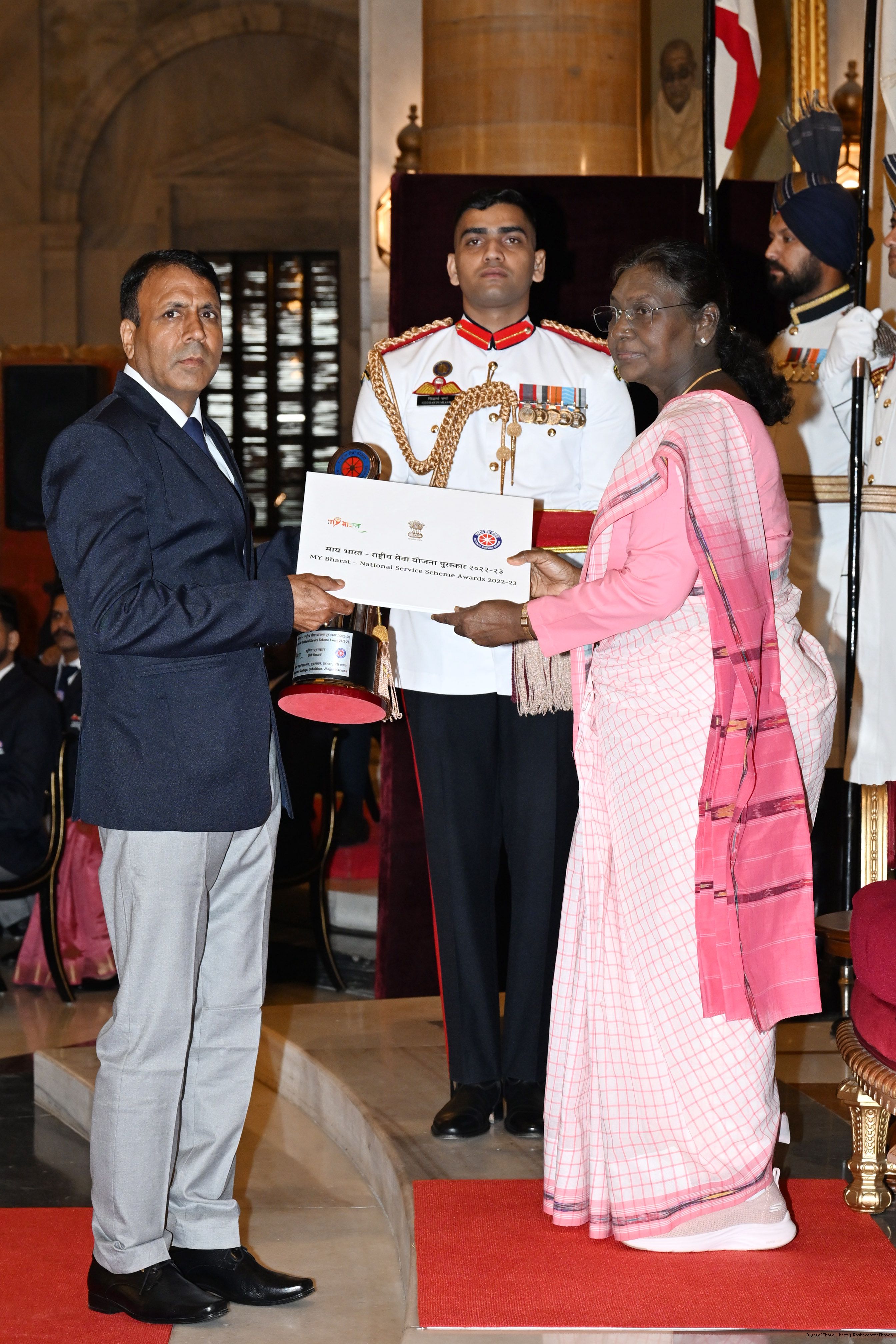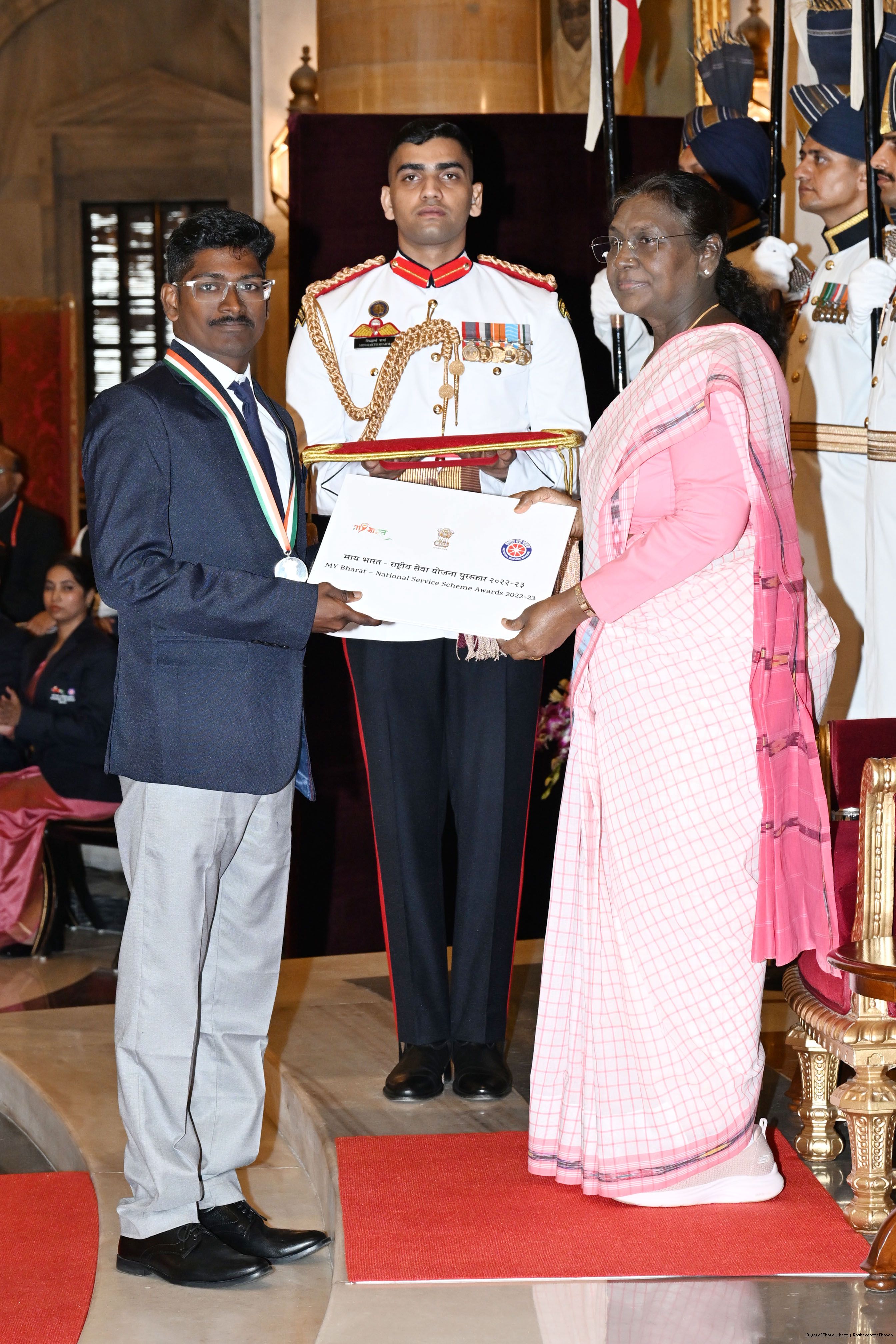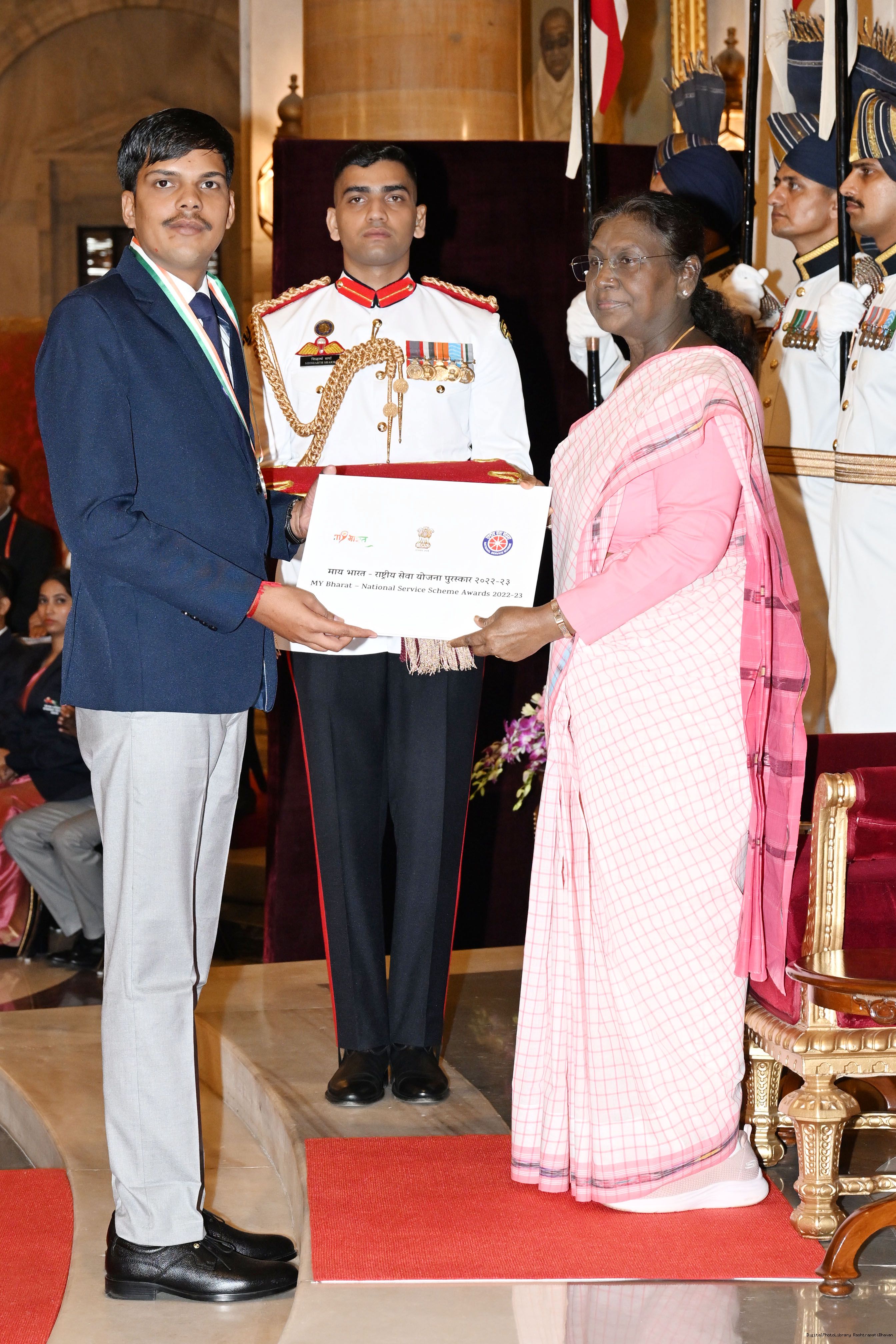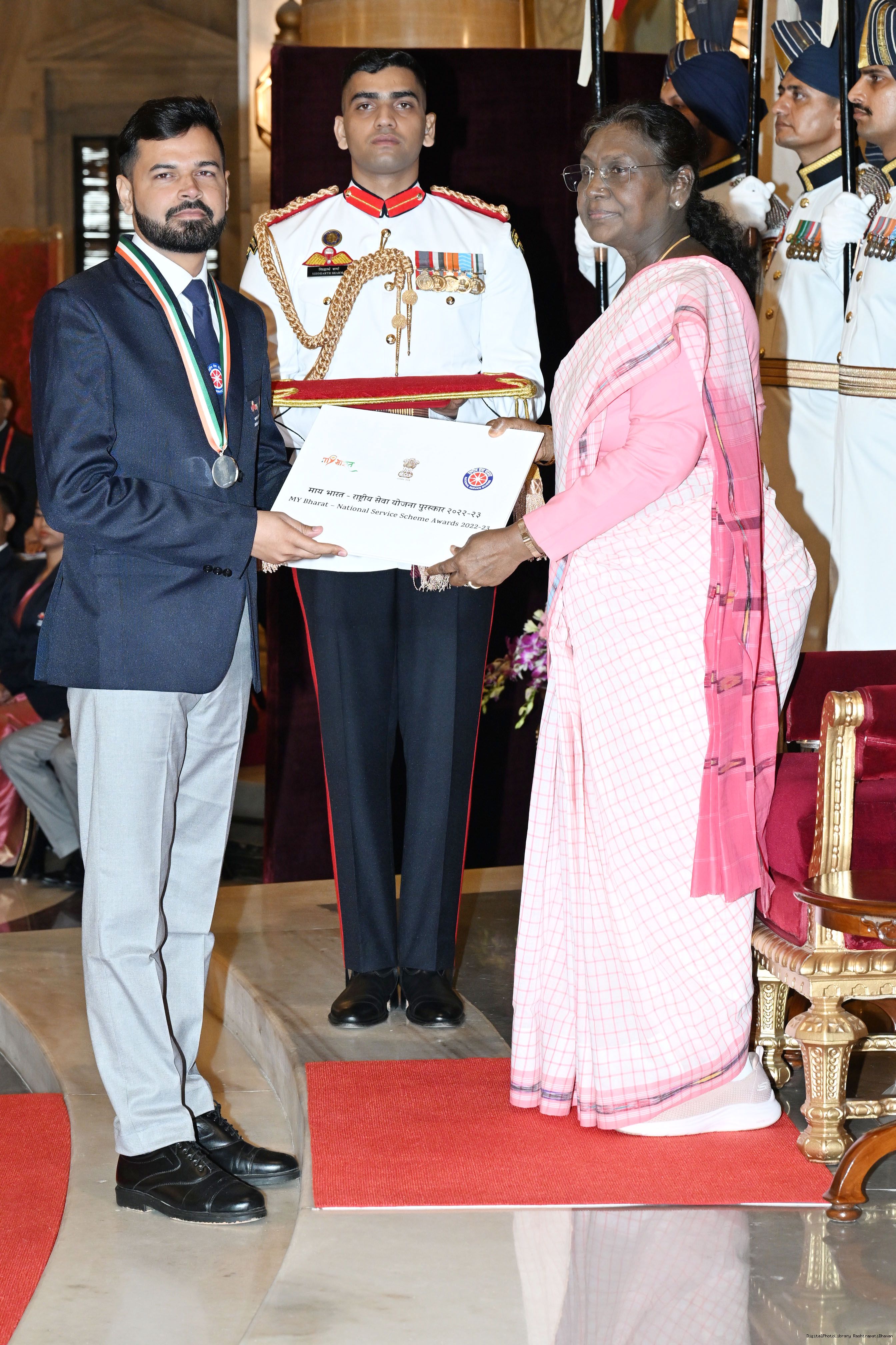 The President of India, Smt Droupadi Murmu, presented the MY Bharat - National Service Scheme Awards for the year 2022-23 at Rashtrapati Bhavan on October 6, 2025.