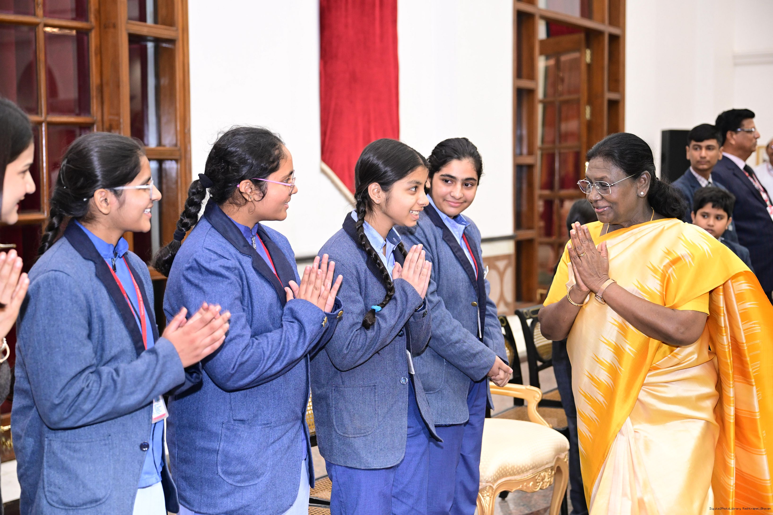 On the occasion of Children's Day, The President of India, Smt Droupadi Murmu interacted with children from various schools and organisations at Rashtrapati Bhavan Cultural Centre on November 14, 2025.