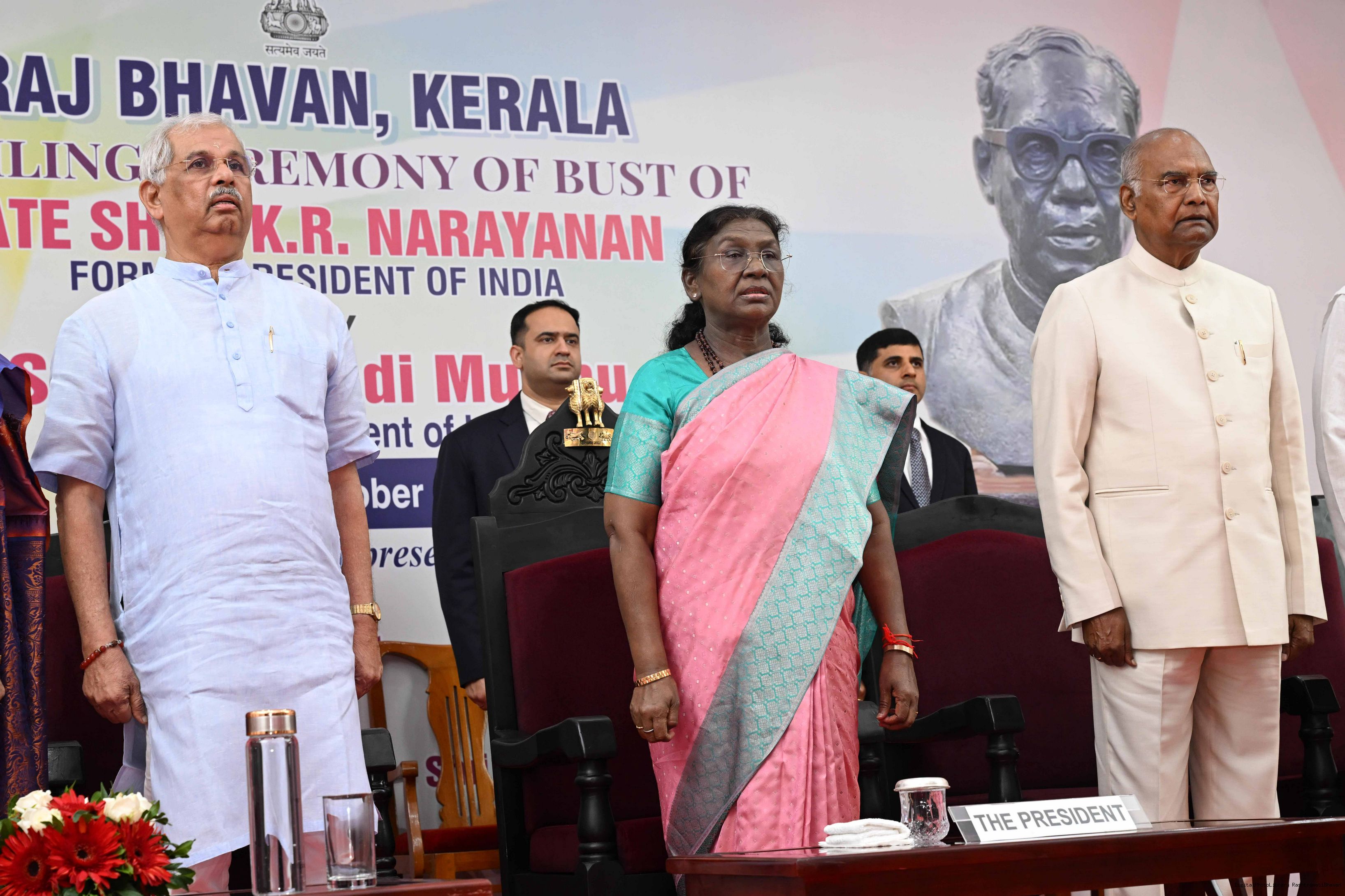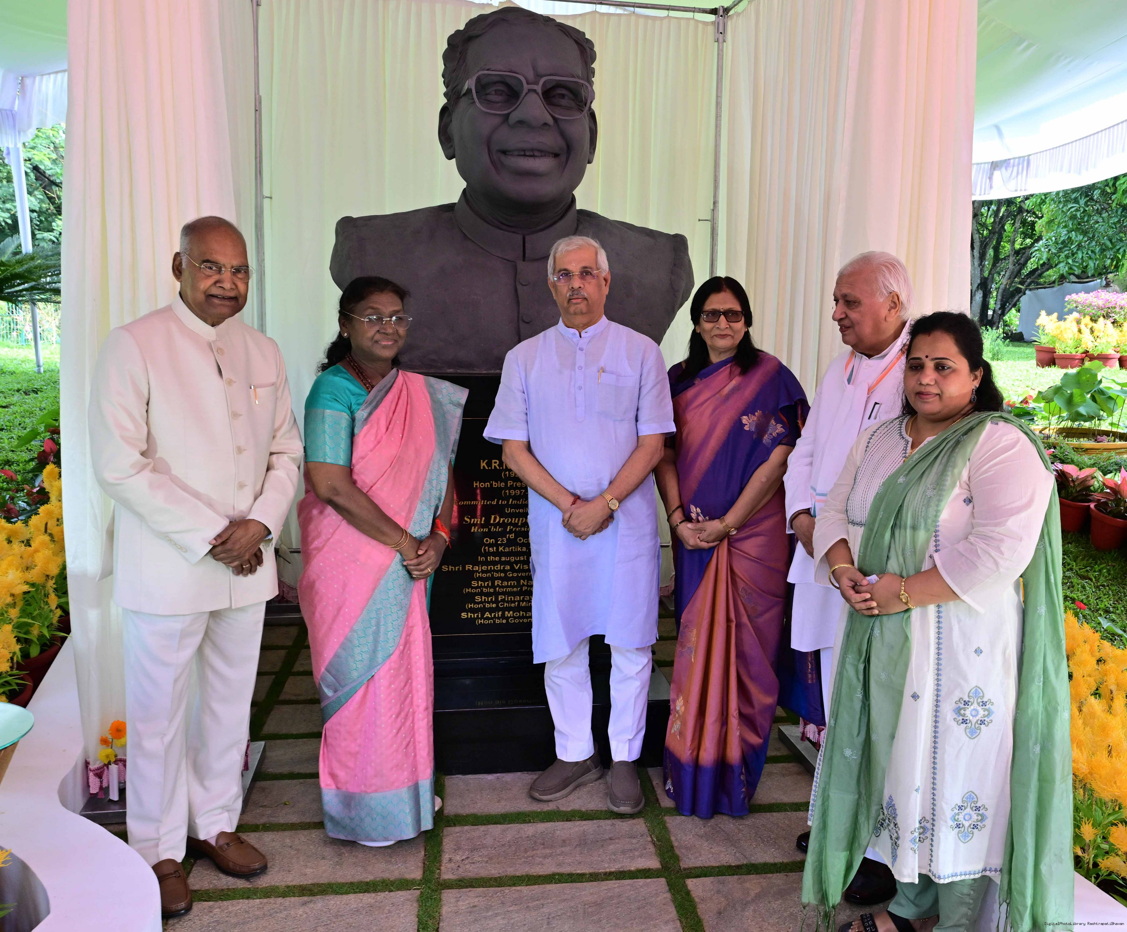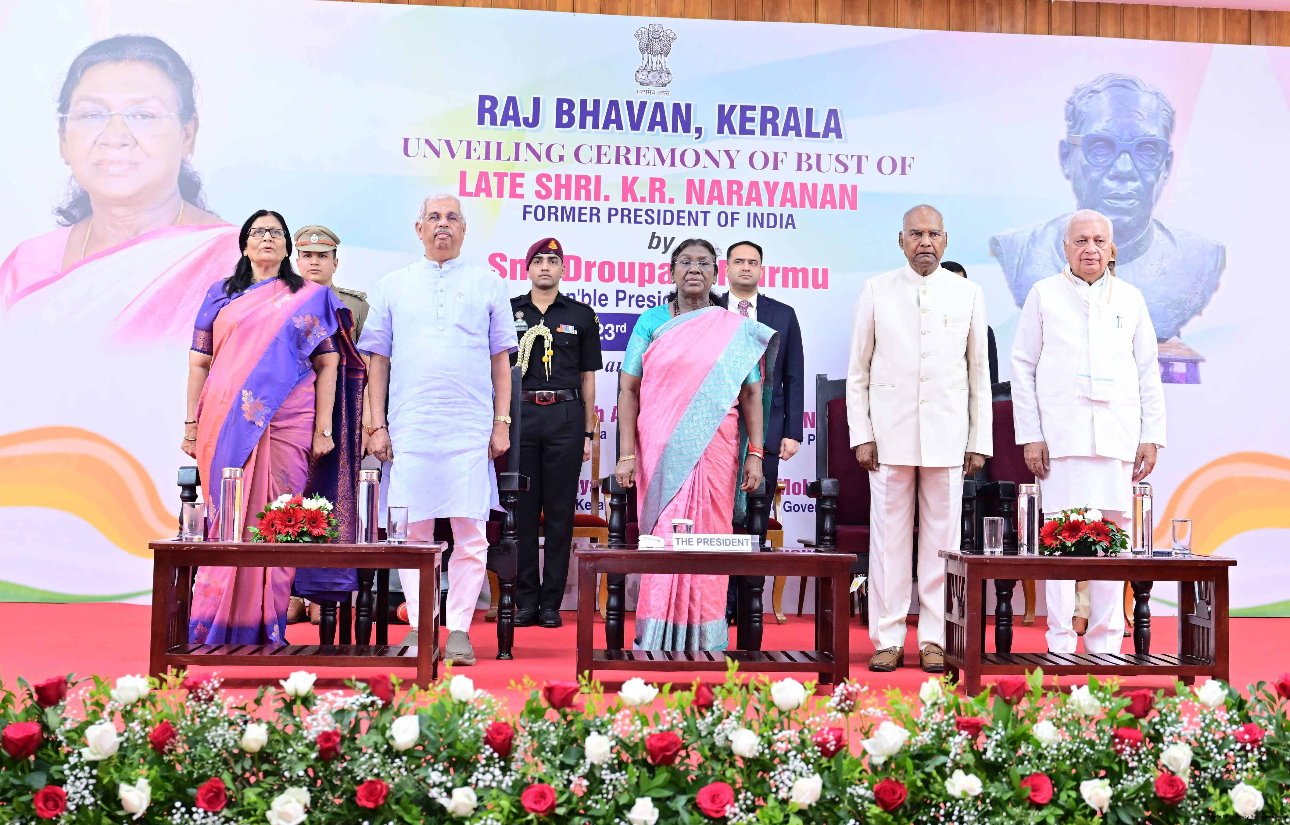 The President of India, Smt Droupadi Murmu unveiled the bust of former President of India, Shri KR Narayanan at Raj Bhavan, Thiruvananthapuram on October 23, 2025.