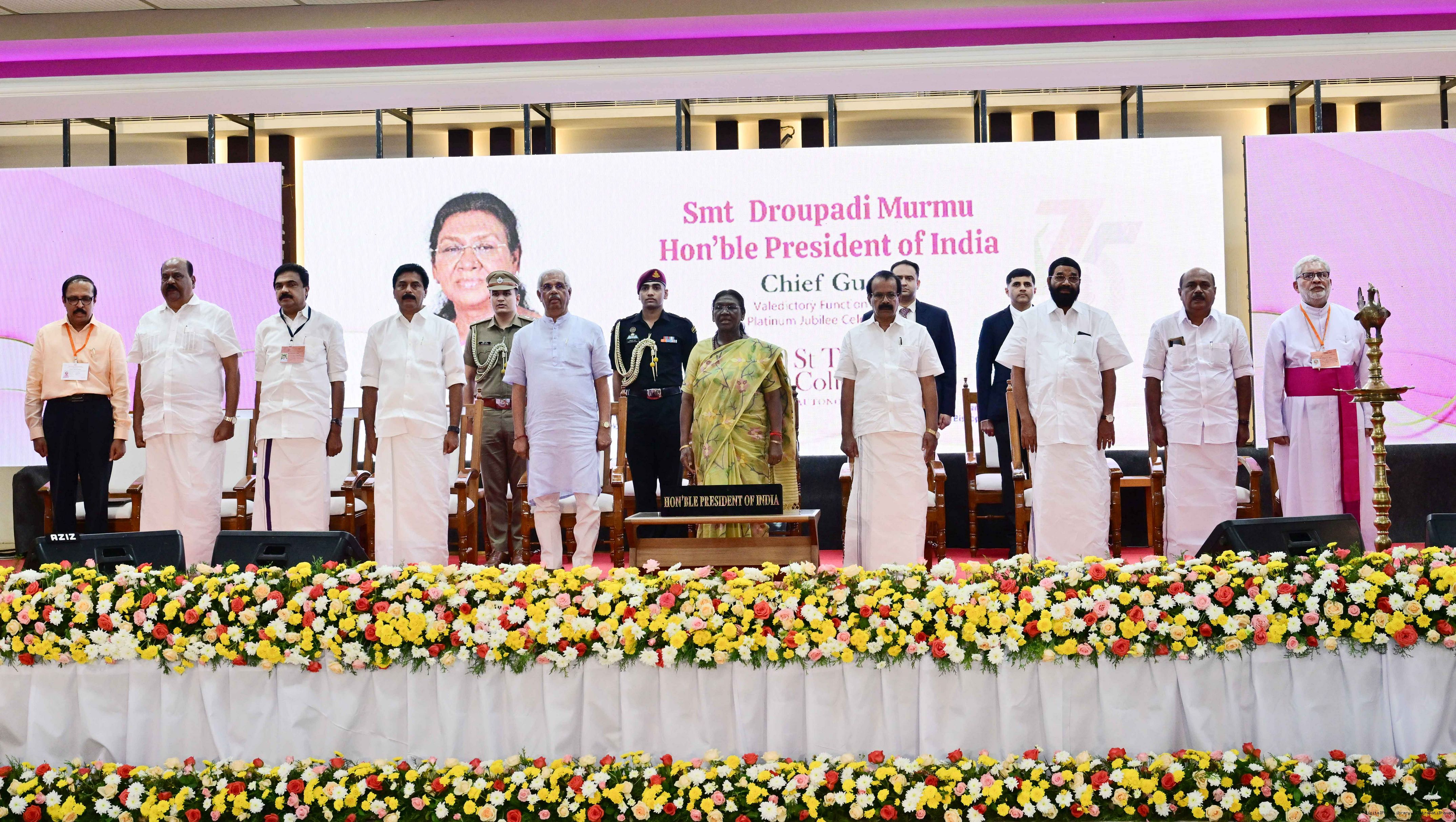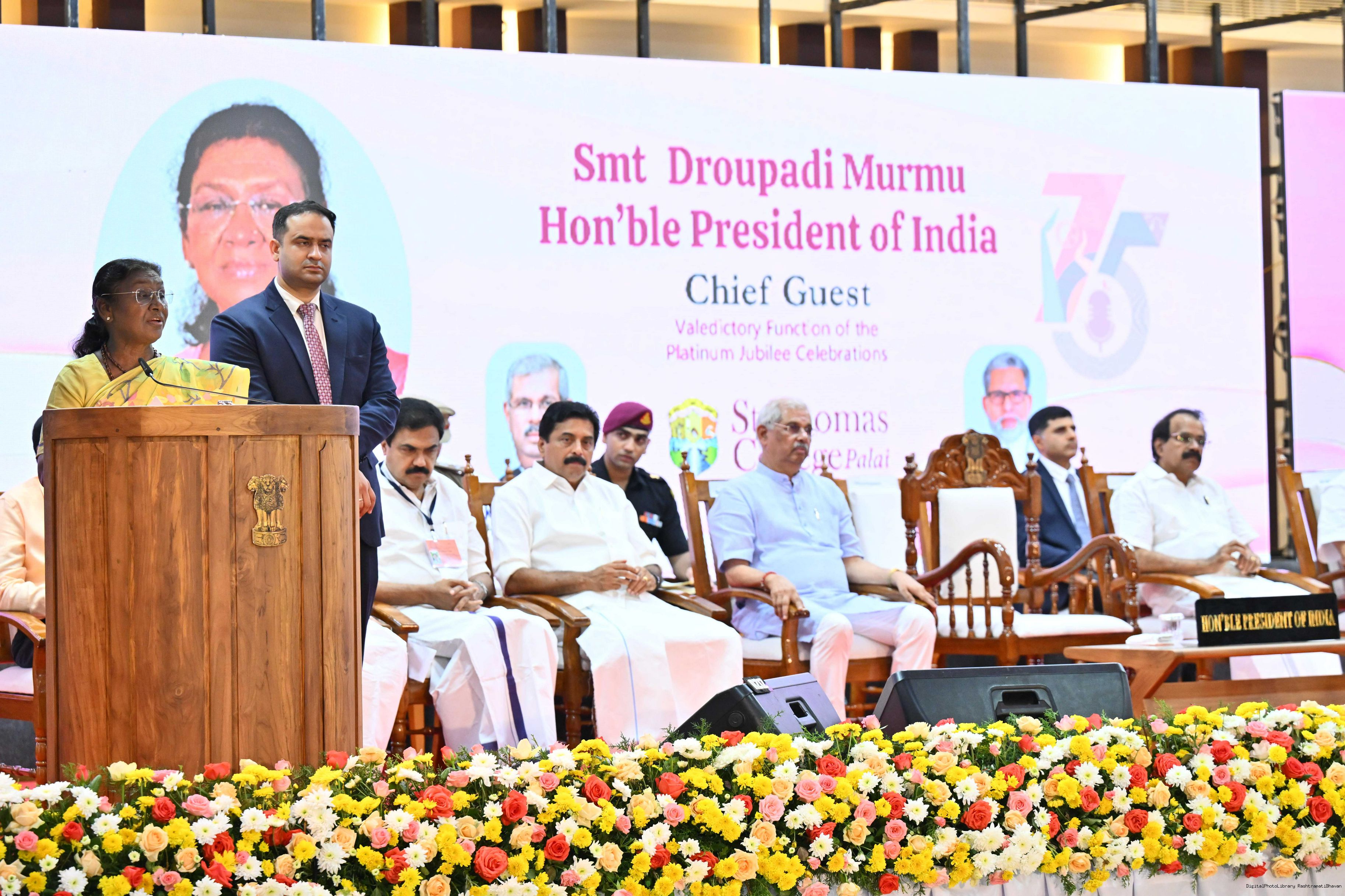 The President of India, Smt Droupadi Murmu graced the valedictory function of the Platinum Jubilee celebrations of St. Thomas College at Palai, Kerala on October 23, 2025.